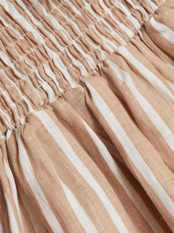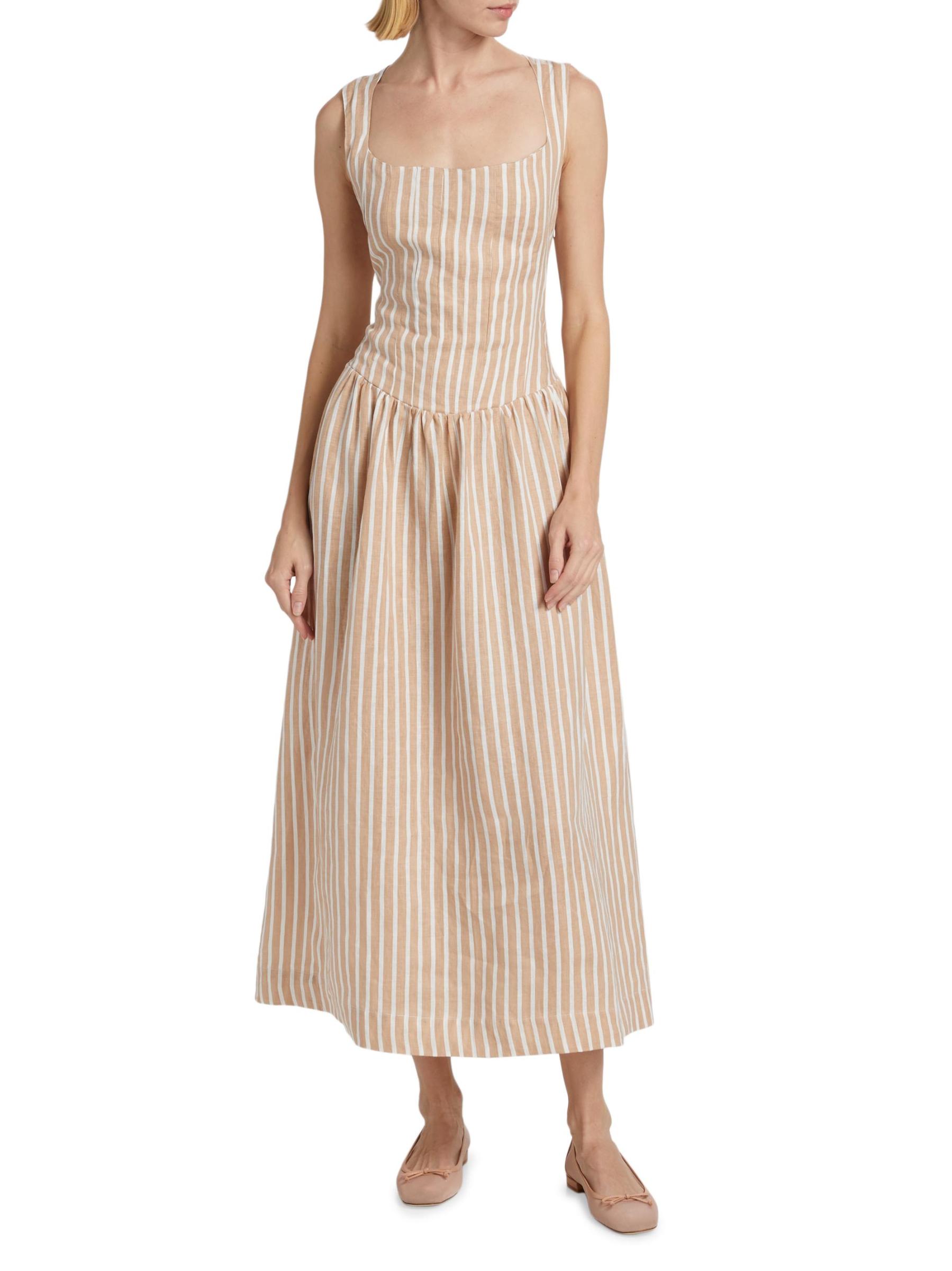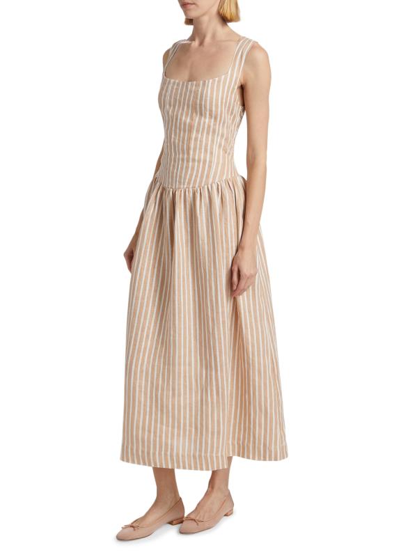 من مجموعة Rapture. يتميّز فستان SWF المتوسط المصنوع من الكتان الخفيف بصدّار ضيّق مع ياقة مربعة وخصر منسدل.مصنوعة من الكتان الذي يتم الحصول عليه بطريقة مسؤولة ويمكن تتبعه رقبة مربعة بدون أكمام لوحة خلفية مطاطية تسحب مصنوعة من الكتان بنسبة 100%، باستثناء الزخرفة غسيل يدوي مستوردة