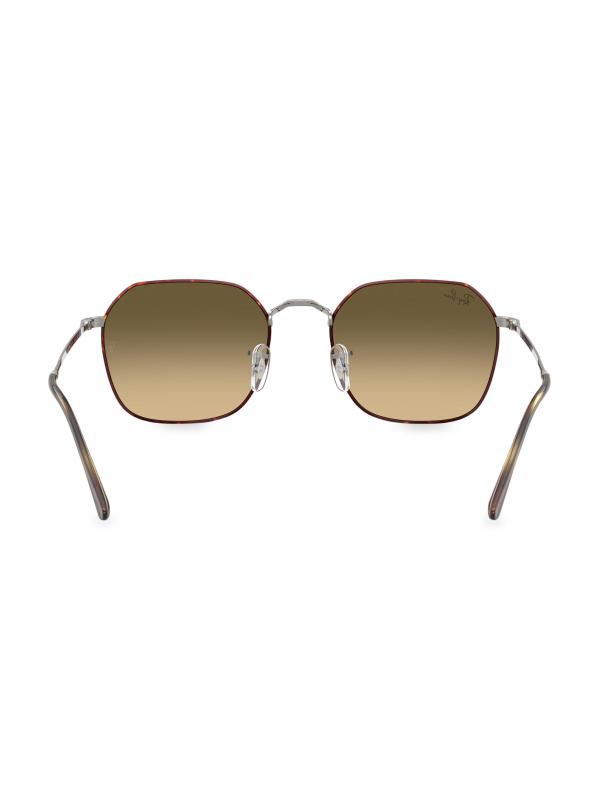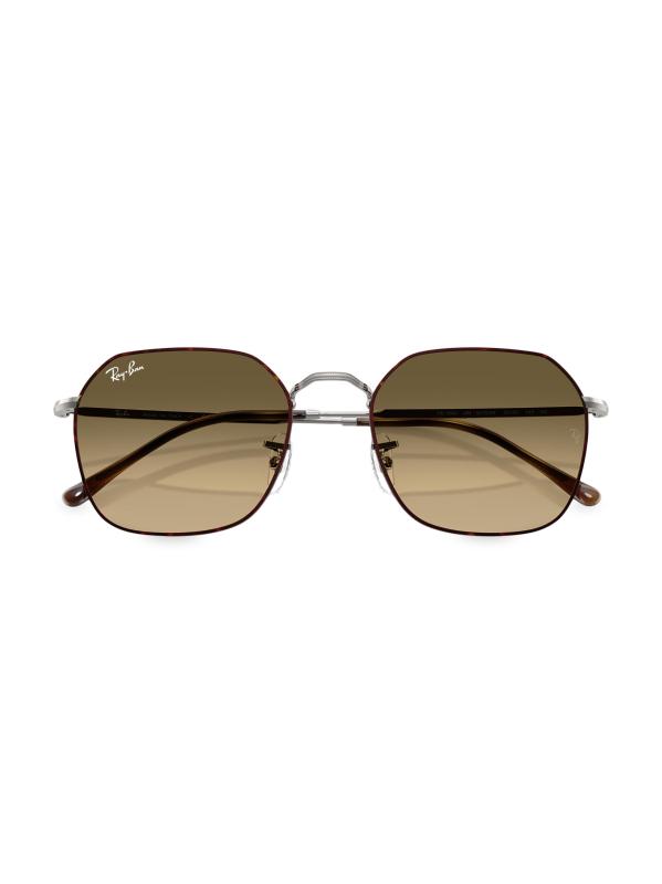 تتميز نظارات Ray-Ban الشمسية بتصميم هندسي مع إطار معدني مزخرف. صُنع هذا الزوج النحيف في إيطاليا، وتم تشطيبه بشعار مميز على العدسة.