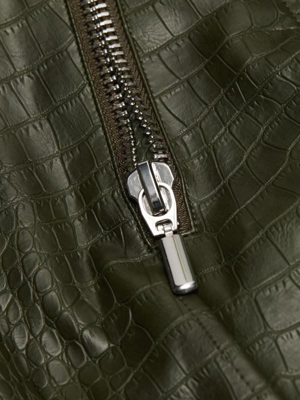 جاكيت ريد بايكر من Nonchalant Label مصنوع من الجلد الصناعي، ويتميز بتفاصيل الدراجات النارية الكلاسيكية مثل طية صدر السترة وحزام مشبك عند الخصر.ثنيات كبس باك أكمام طويلة جيوب أمامية بسحّاب حزام مشبك إغلاق بسحّاب أمامي 100% بوليستر تنظيف جاف مستوردة