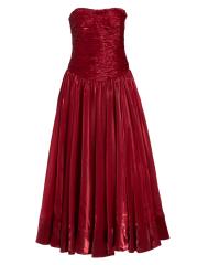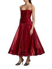 يتميز فستان Regent المتوسط الخالد من Aje بصدّار مطوي وتنورة على شكل حرف A وسحّاب خلفي مكشوف.
