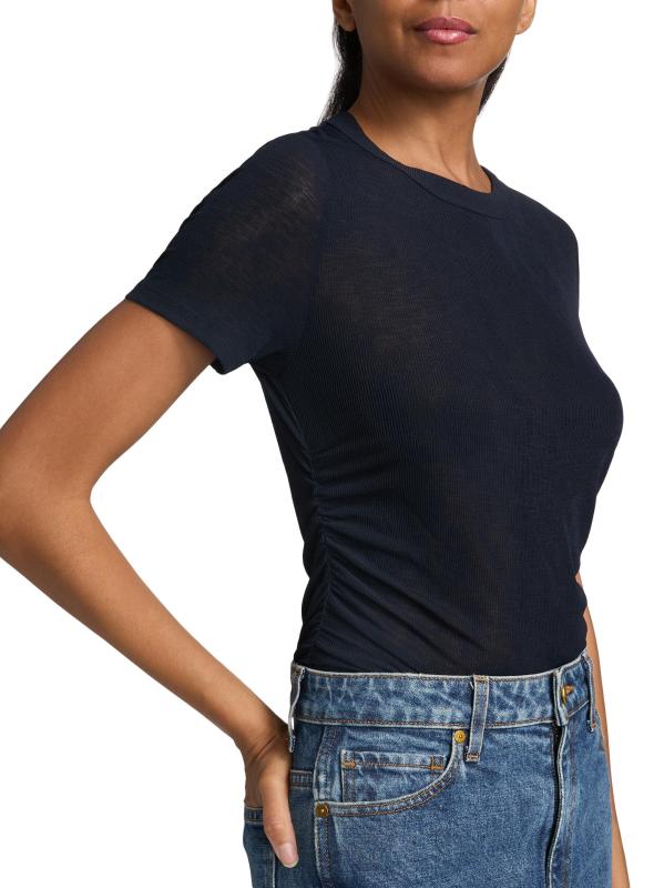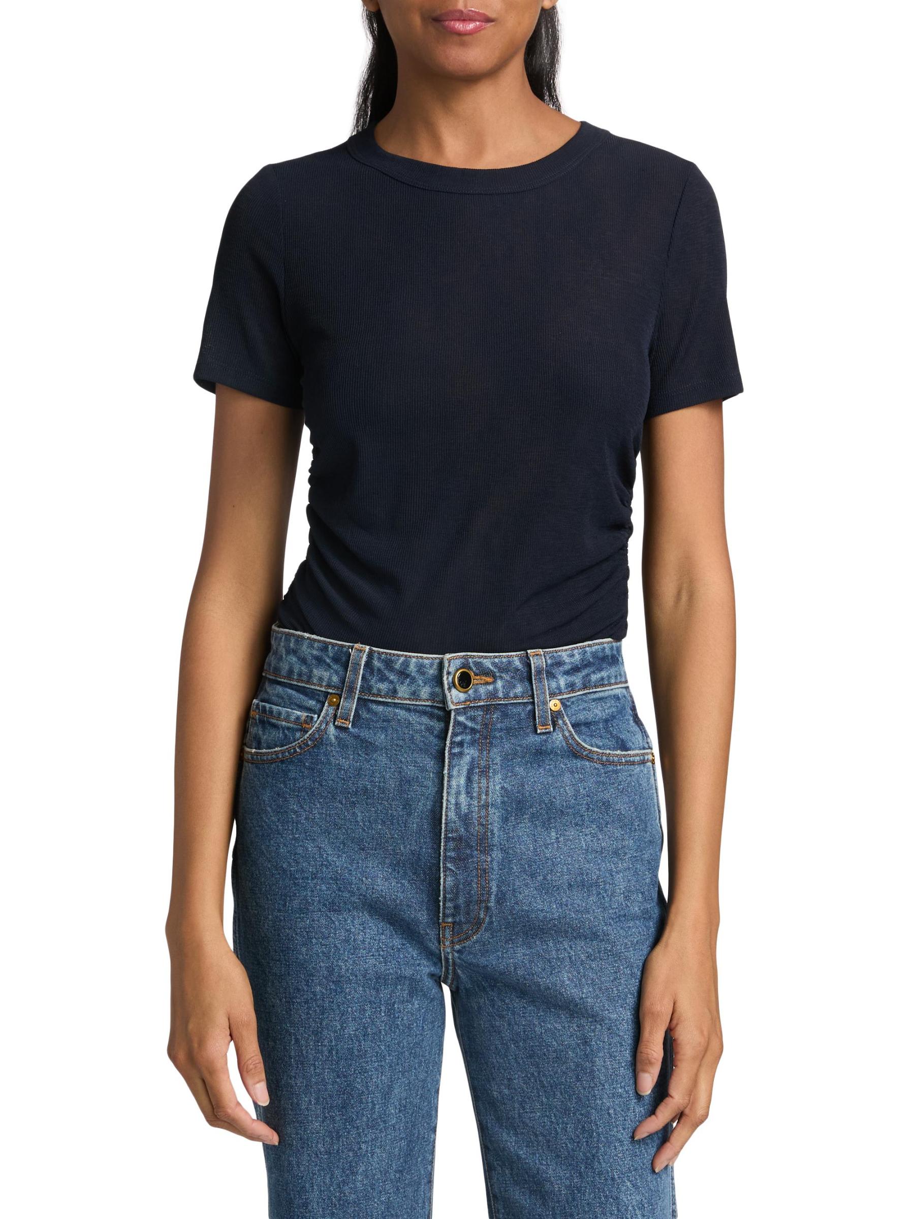 تيشيرت Remus ذو الرقبة المستديرة من Veronica Beard مصنوع من قماش شفاف محبوك، مما يمنحه ملمسًا ناعمًا.رقبة مستديرة أكمام قصيرة تسحب 96% بوليستر/ 4% إليستين يُغسل في الغسالة مستوردة