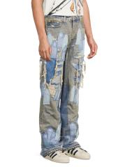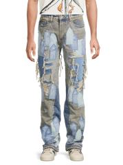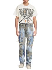 يتميز بنطال جينز Who Deciores Patched Arch Repared Blowout برقع زجاجية ملونة مستوحاة من النوافذ. تم تصميم هذا الطراز بمقاس مريح مع تفاصيل مزعجة.