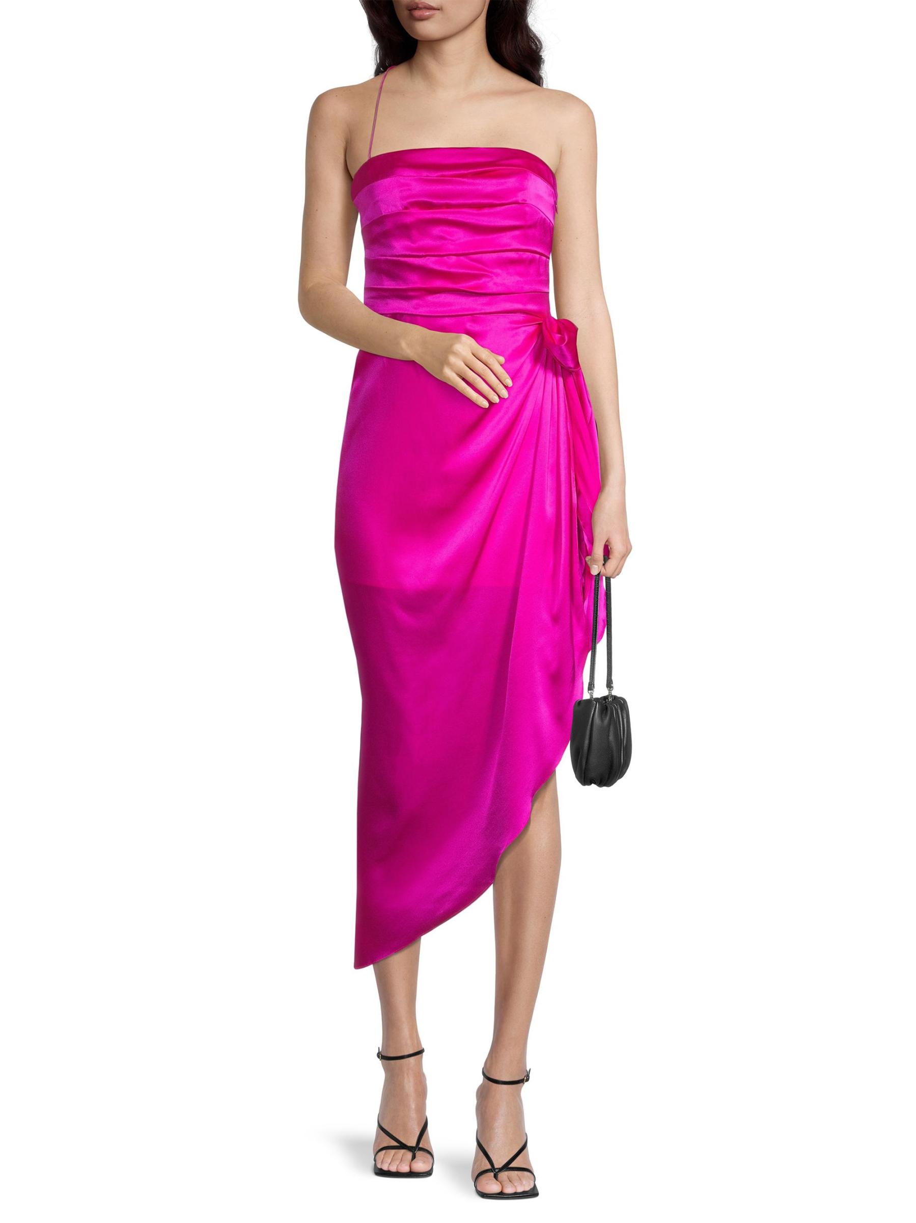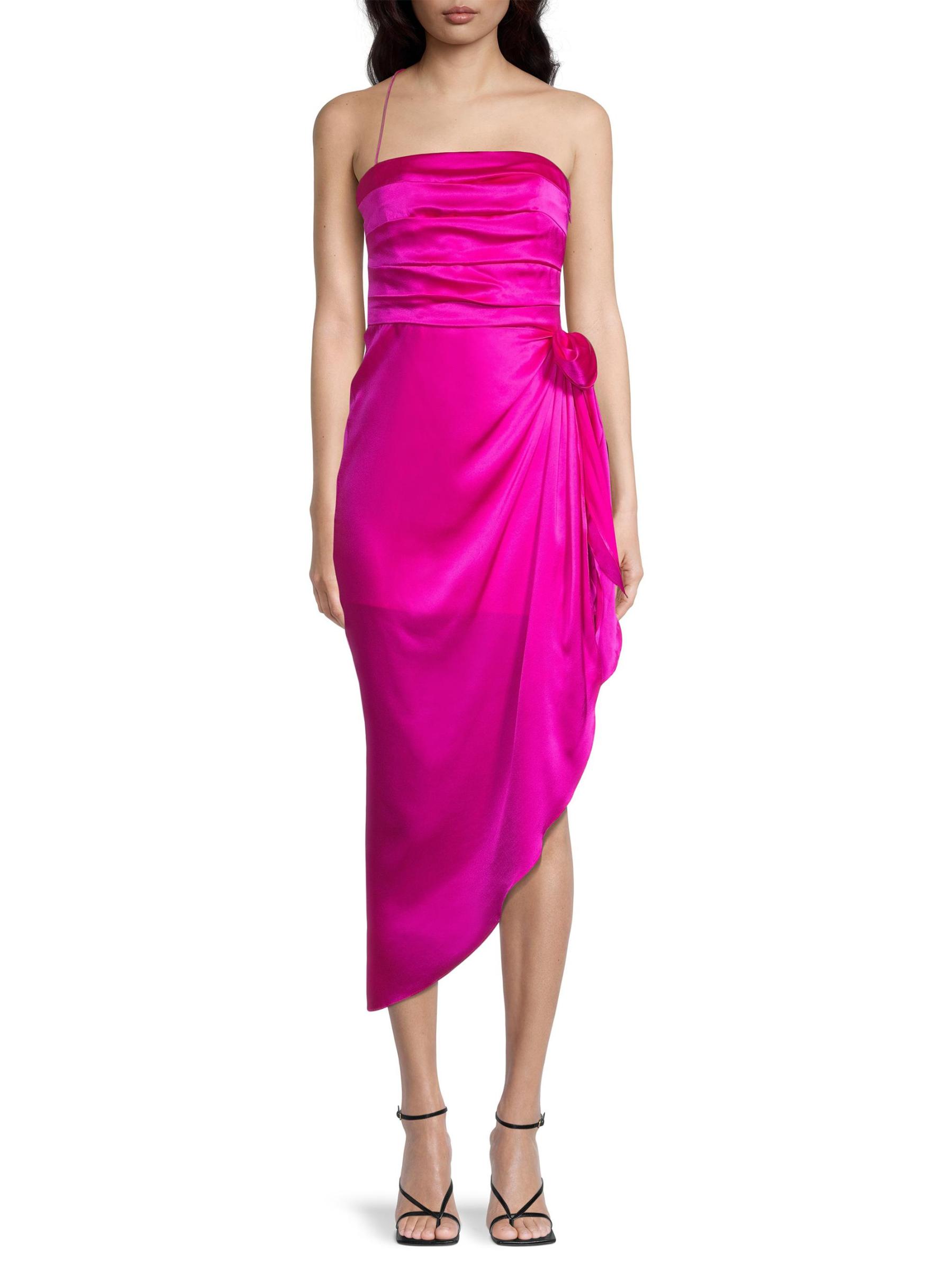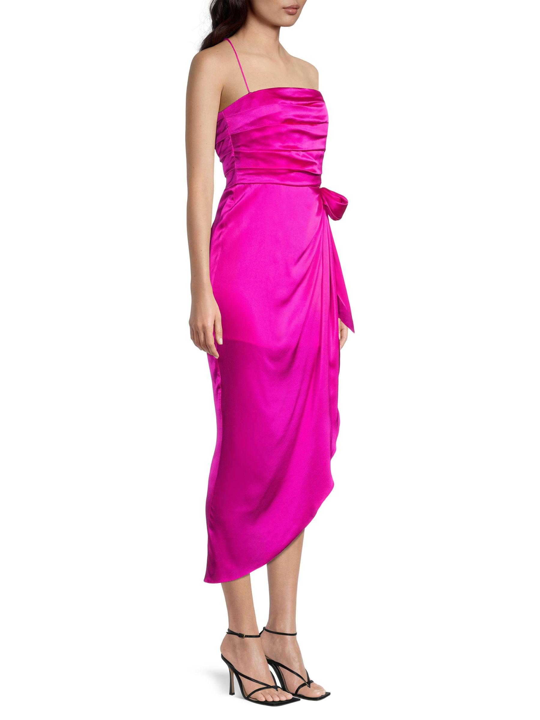 من مجموعة ليالي المنتجع. يُربط هذا الفستان غير المتماثل عند الخصر للحصول على تنورة على طراز الباريو، ويتميز بصدّار مطوي وحزام كتف رقيق باللون الإسباجيتي.رقبة مستقيمة حزام السباغيتي إغلاق بسحّاب جانبي 92% حرير/ 8% سباندكس البطانة: 100% حرير تنظيف جاف مستوردة