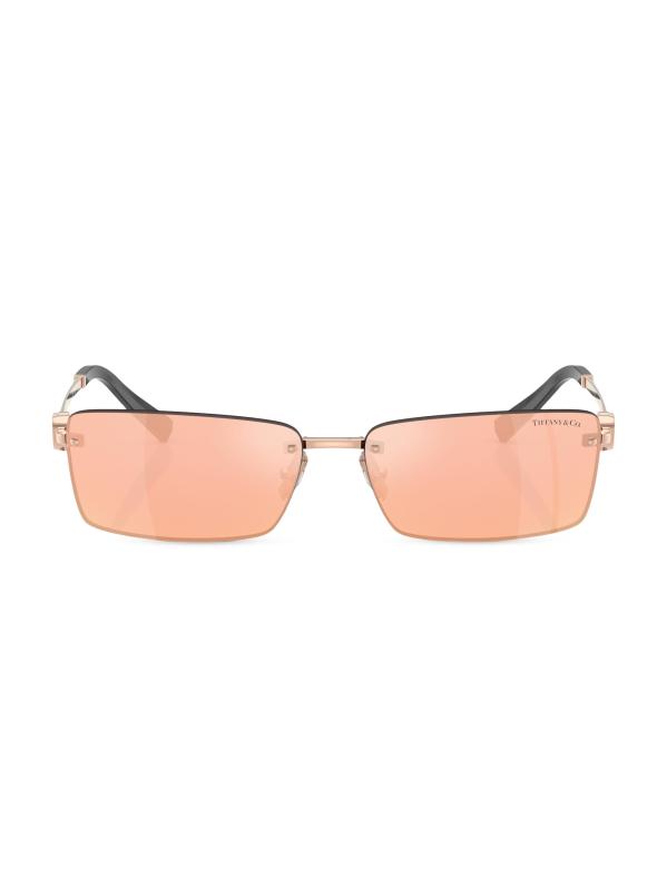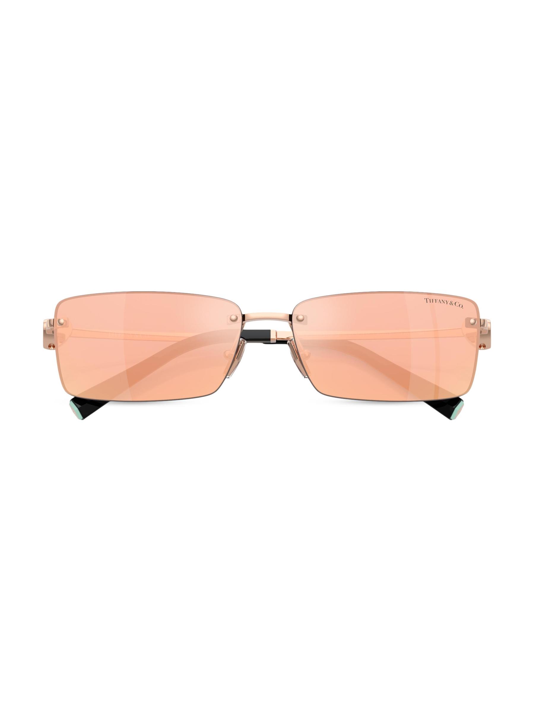من مجموعة العودة إلى تيفاني. تيفاني أند كو.» تتميز النظارات الشمسية المستطيلة بلوحة على شكل قلب على الصدغين ومزيج من المعادن ذات اللون الذهبي والذهبي الوردي. يقدم هذا النمط مفاجأة فريدة من نوعها مع الكريستال الرقيق داخل المفصلة، والذي يتم الكشف عنه عند إغلاق المعابد.حماية 100% من الأشعة فوق البنفسجية عدسات عاكسة معدن صُنع في إيطاليا