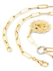 من مجموعة ريفيري. صُممت هذه القلادة من Foundrae لترمز إلى قوة الفرح المفعمة بالحيوية، التي تسمح للروح بالتحليق مثل الفراشة، وتسلط الضوء على سلسلة روابط من الذهب الأصفر عيار 18 قيراطًا مع مشبك فوب مرصع بالألماس لترسيخ السحر المذهل.