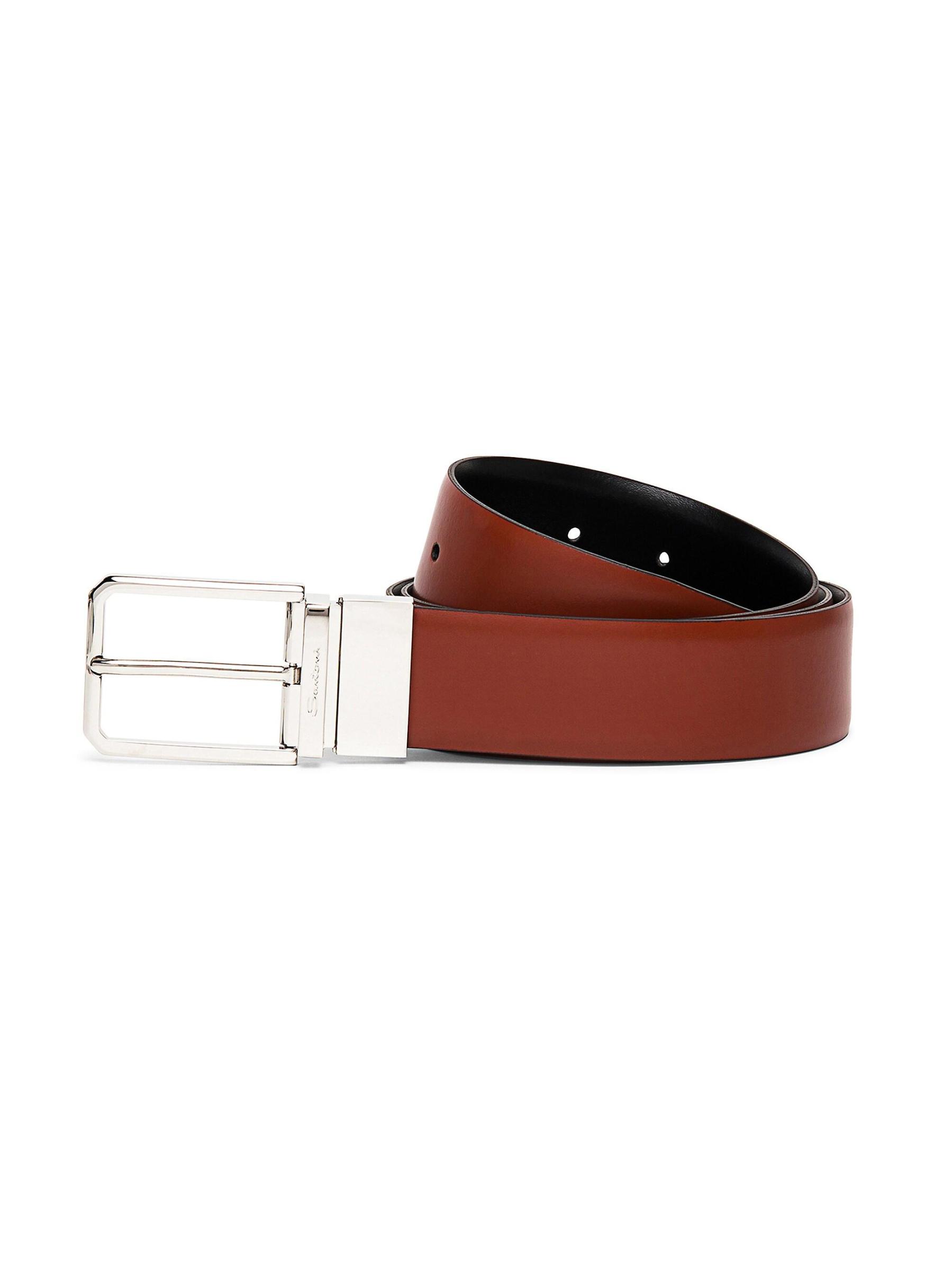 يُغلق حزام اللباس الجلدي القابل للانعكاس من Santoni بإبزيم قابل للتعديل في الأمام.