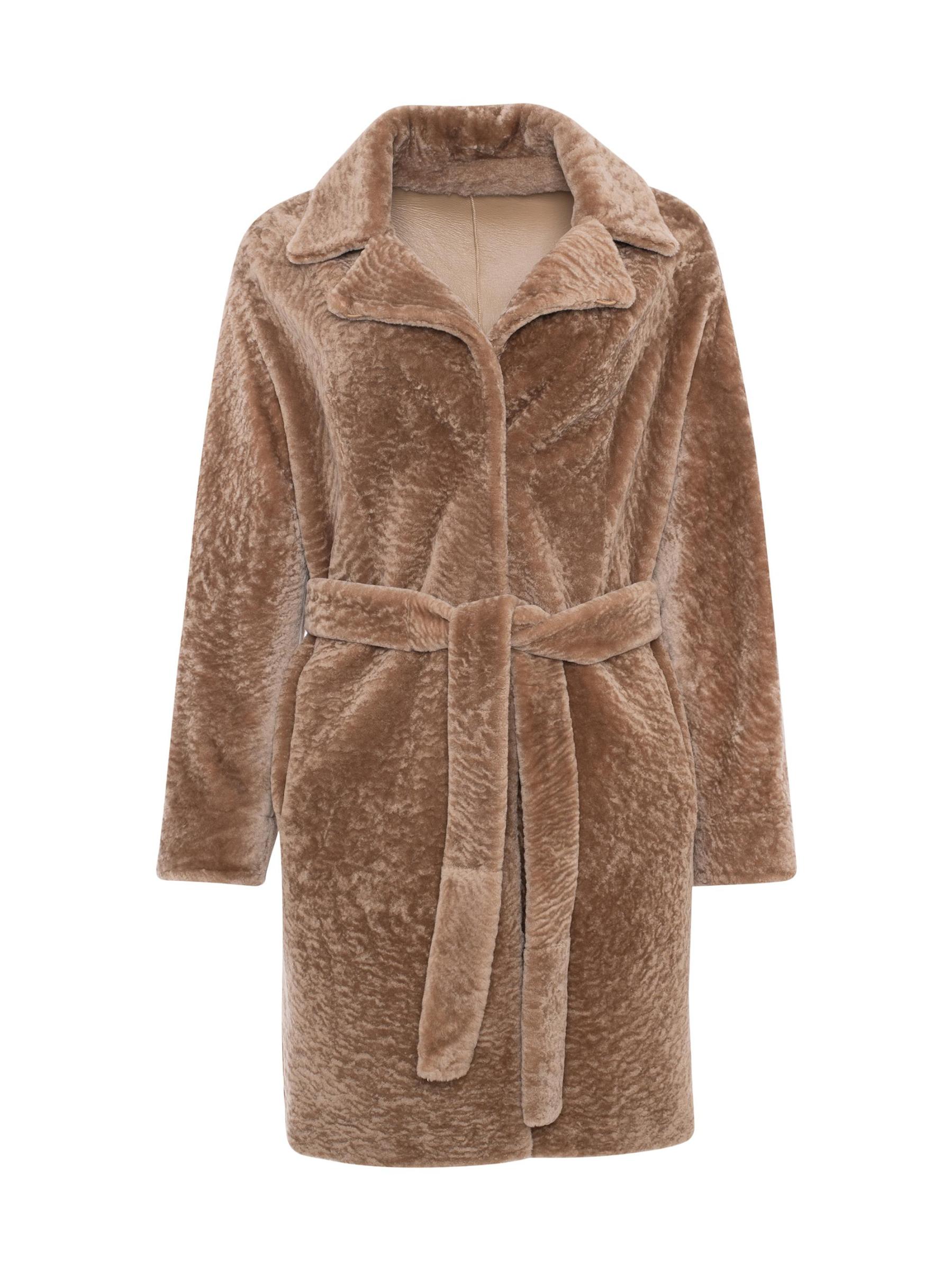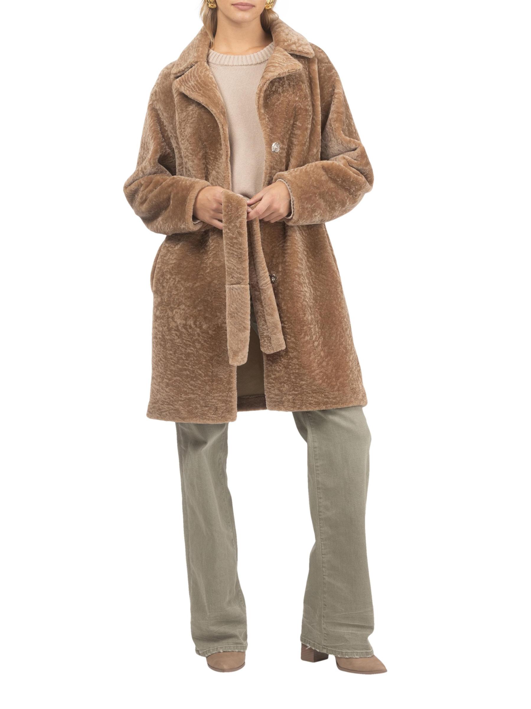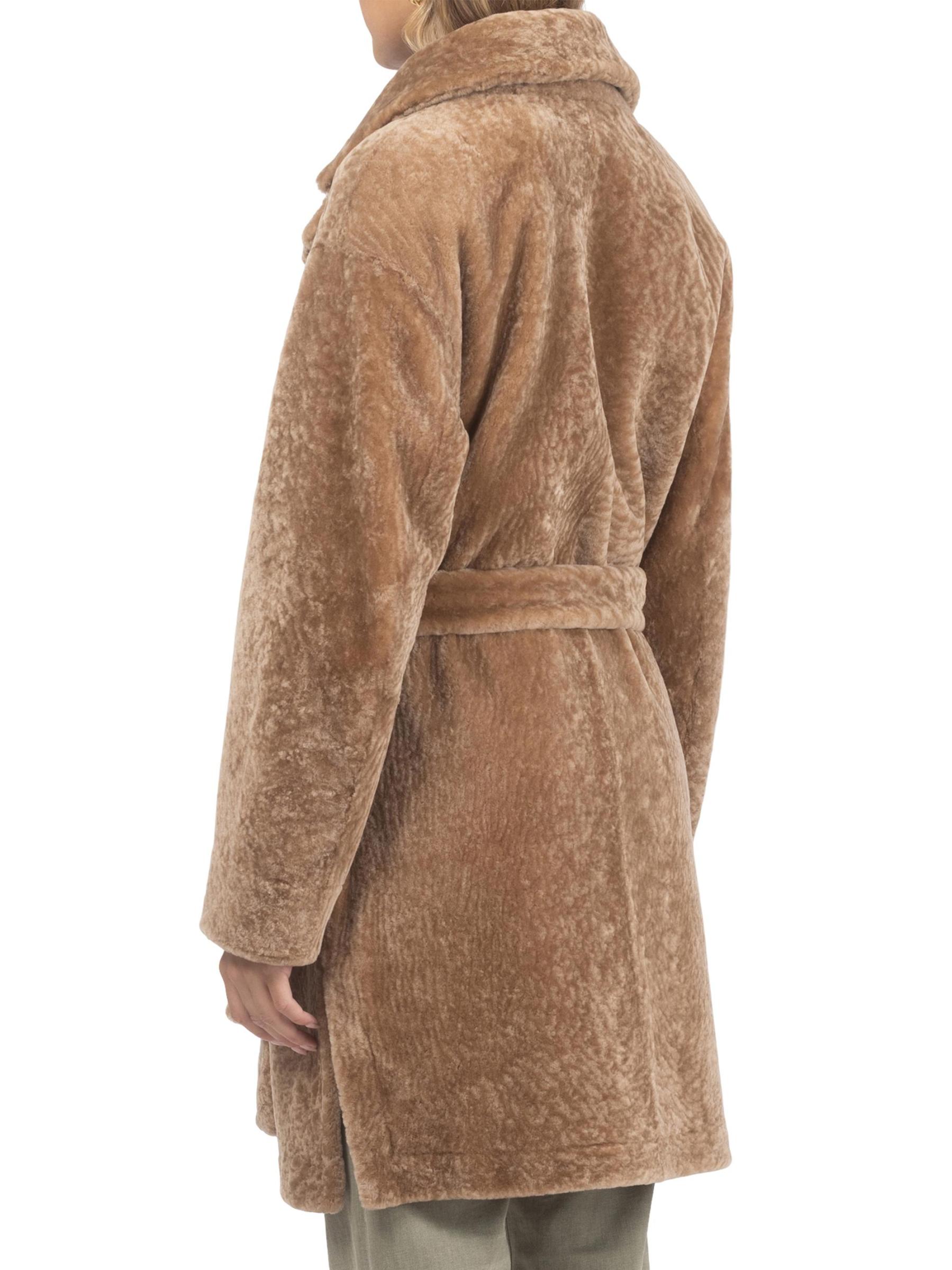 تجمع عربة Shearling Lamb ذات الوجهين بين الدفء المريح والملمس الأنيق. يتميز بخصر مربوط، مما يوفر ملاءمة جذابة مع السماح لك بالتبديل بين المظهرين دون عناء.