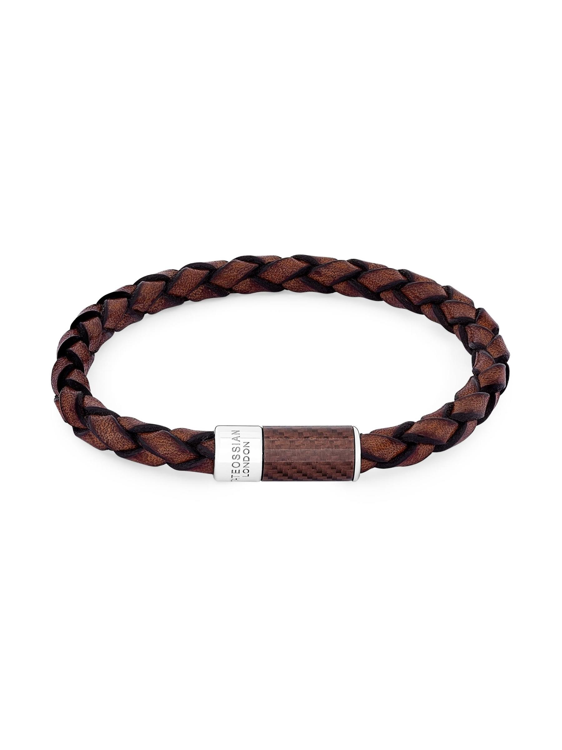 يتميز سوار Tateossian هذا المصنوع من الجلد المضفر والمعدن المطلي بالروديوم بإغلاق مغناطيسي.