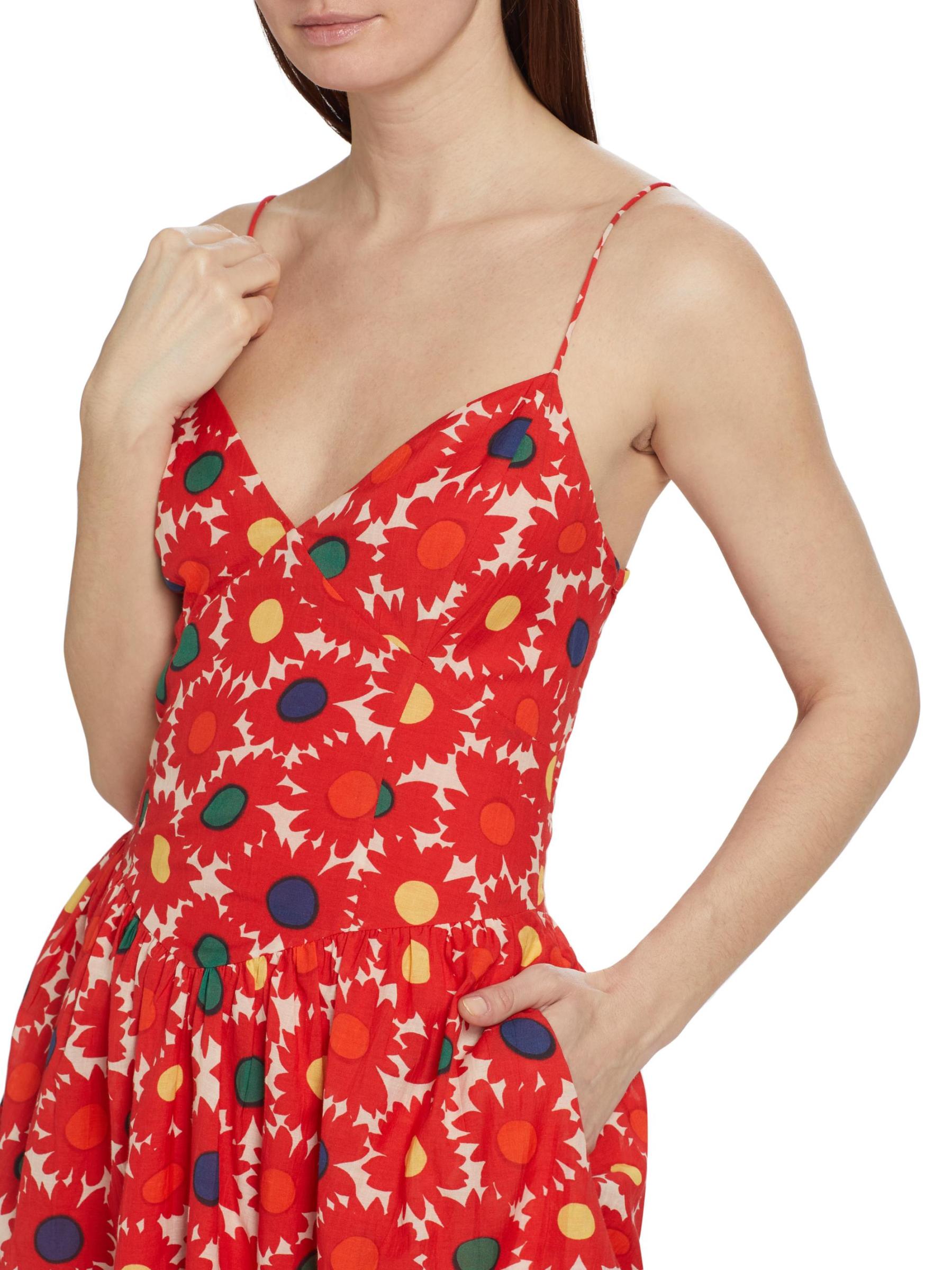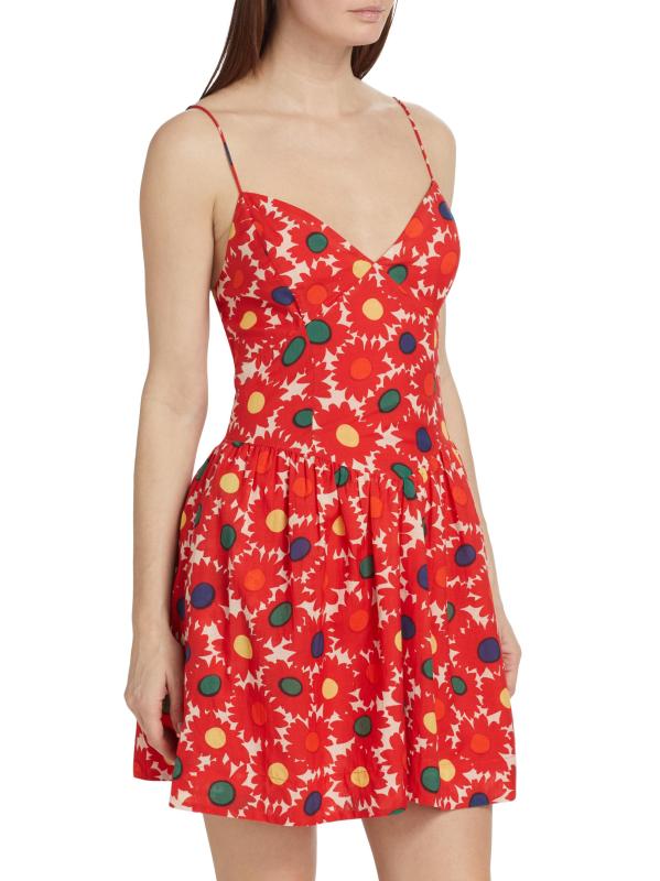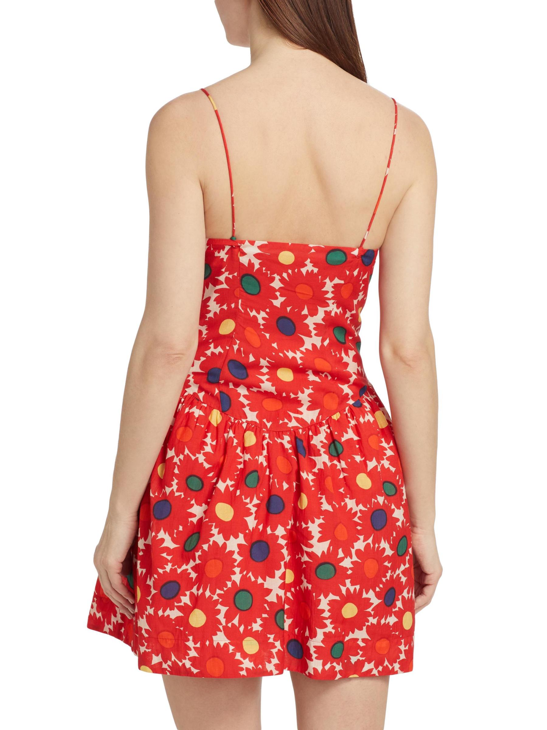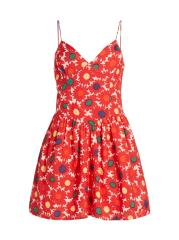 يتميز فستان Rhonda القصير الواسع من رود بنقشة الأزهار النابضة بالحياة والخصر الباسكي.