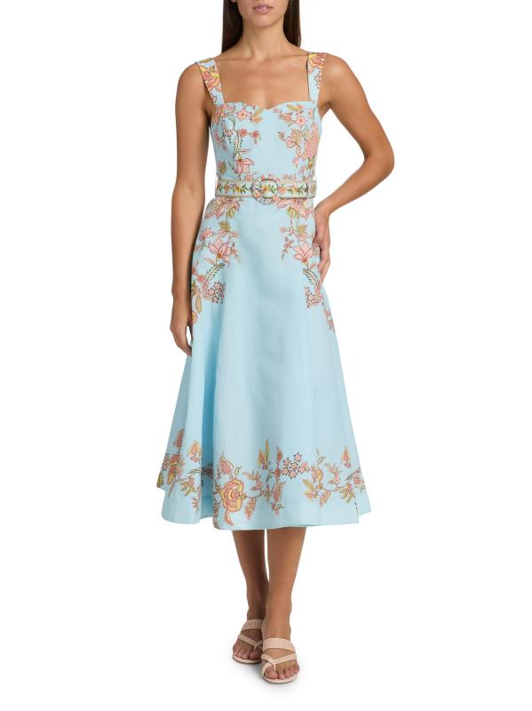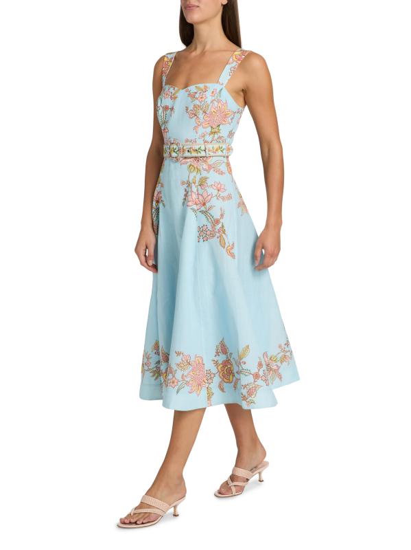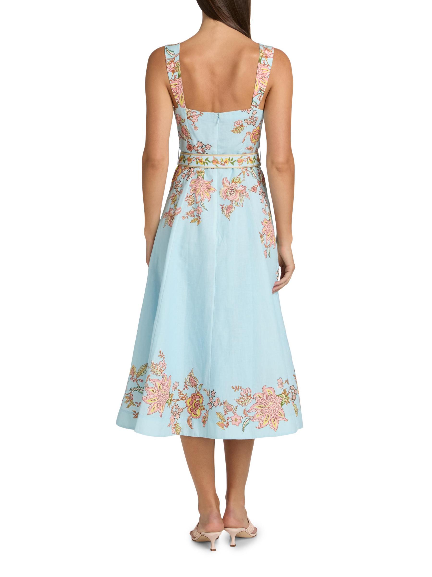 فستان متوسط الطول بحزام من القطن والكتان من Riah Floral