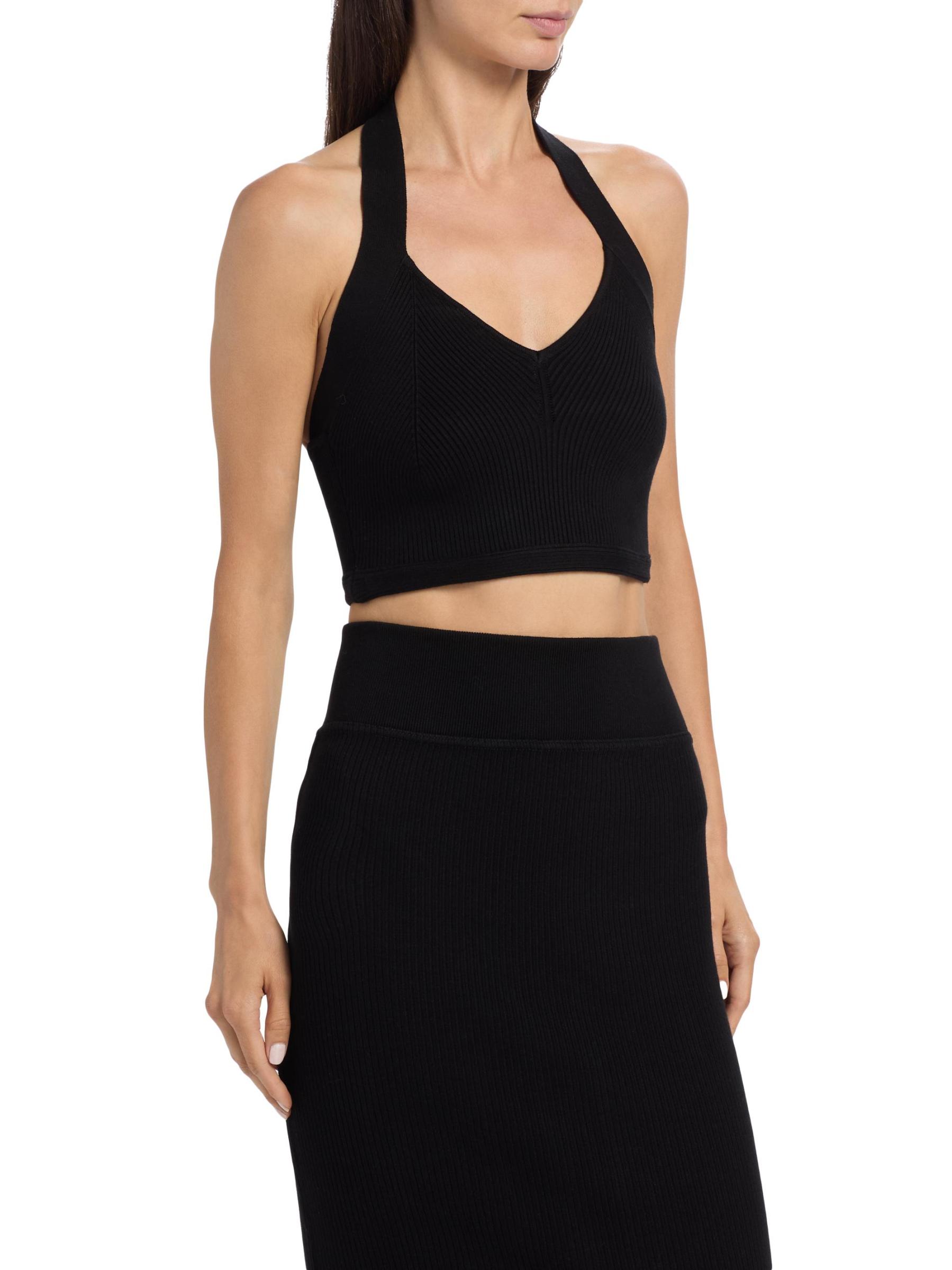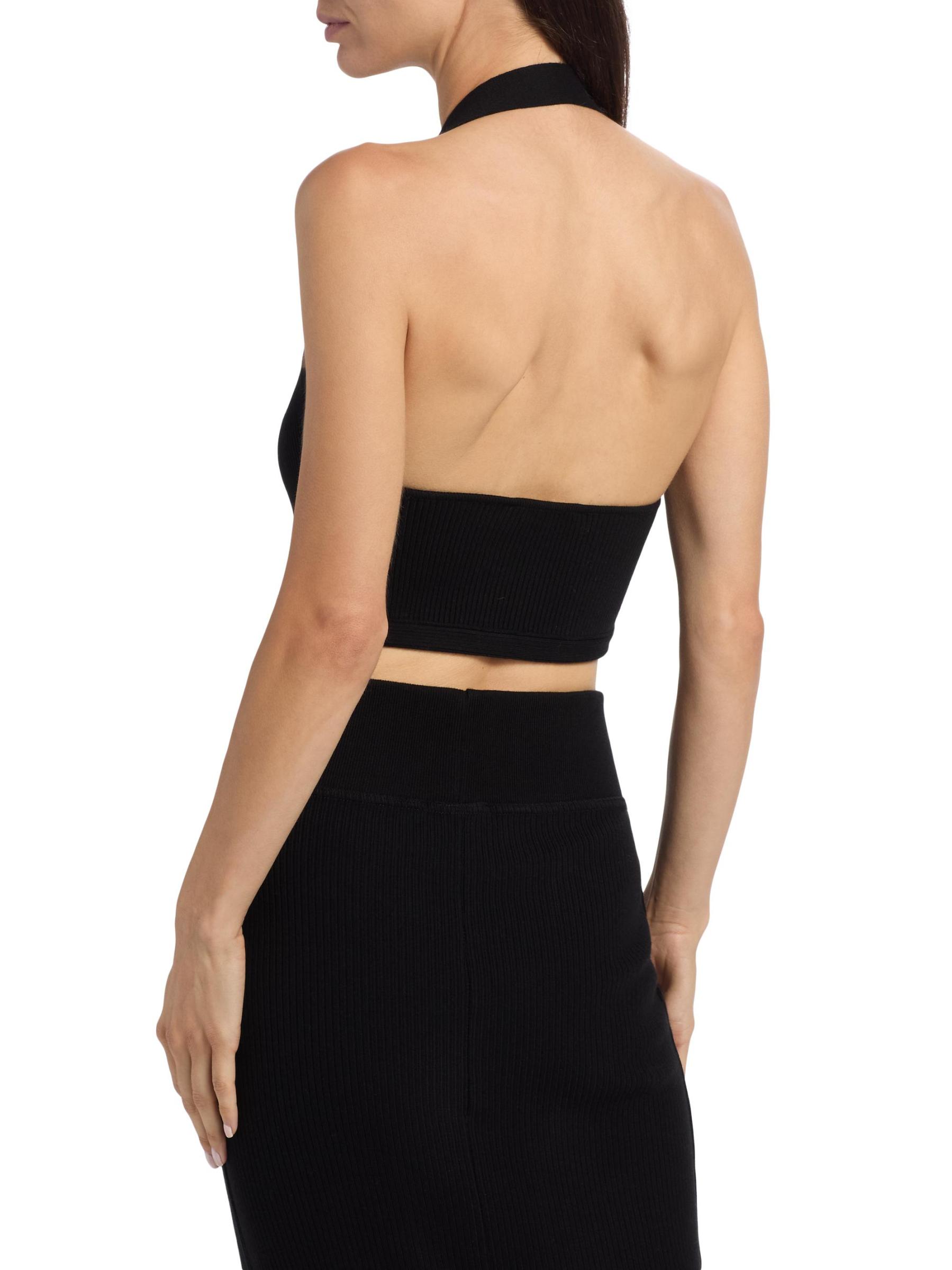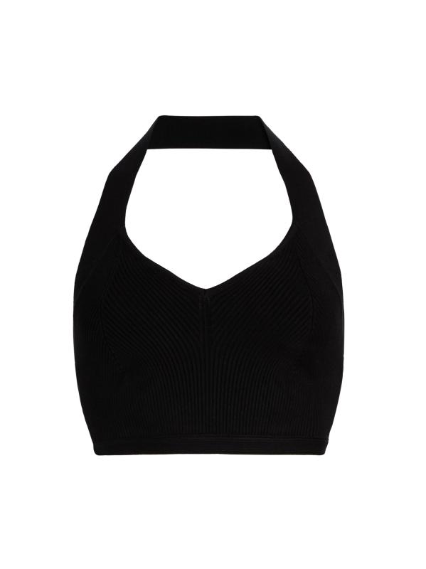 صُمّمت هذه البلوزة ذات الرسن من WARDROBE.NYC من نسيج مضلّع صغير الحجم، لتمنحك قصّة قصيرة تُناسب الجسم.رقبة رسن بدون أكمام تسحب قطن بنسبة 100% يُغسل في الغسالة صُنع في إيطاليا