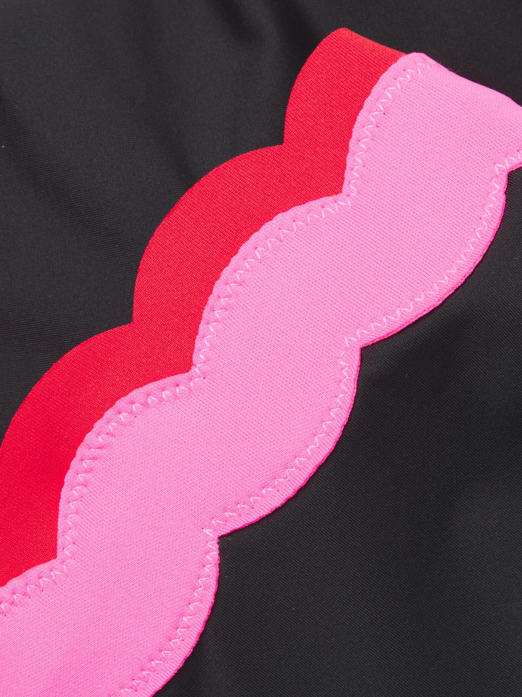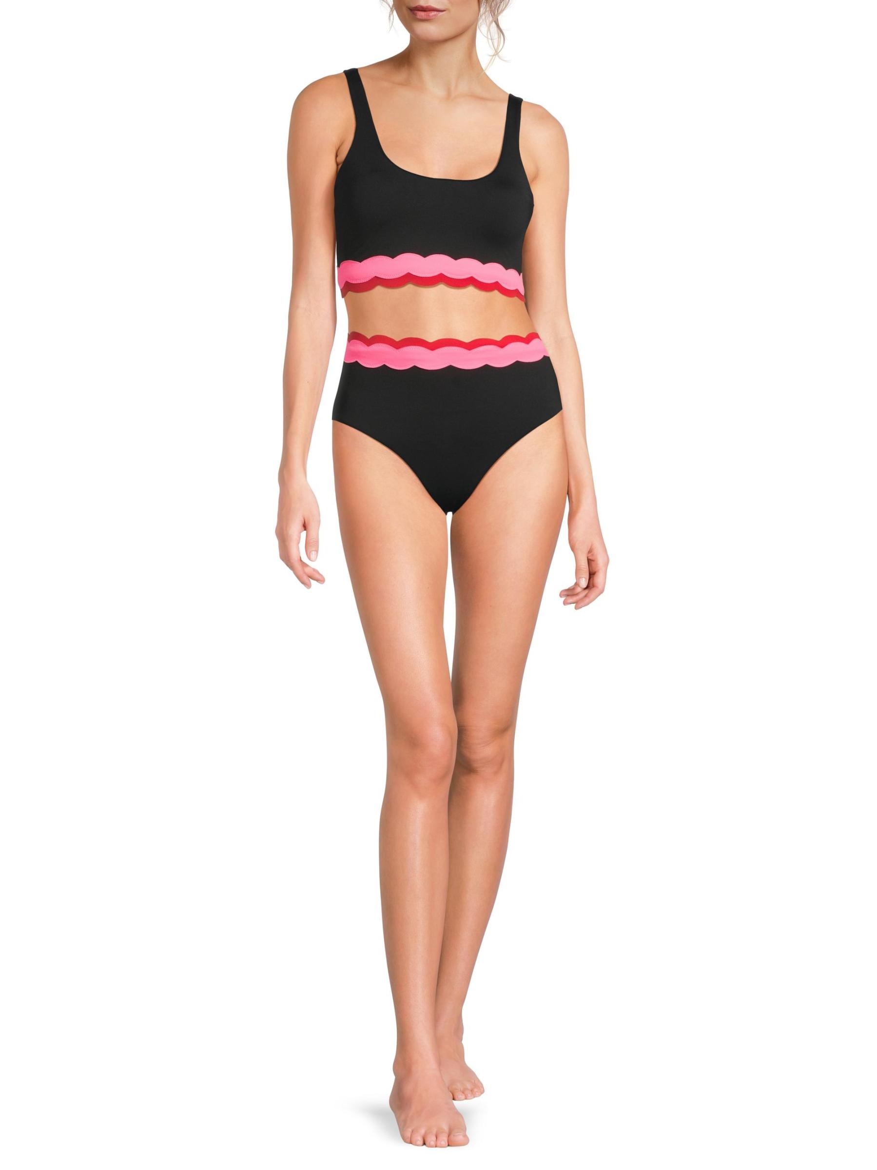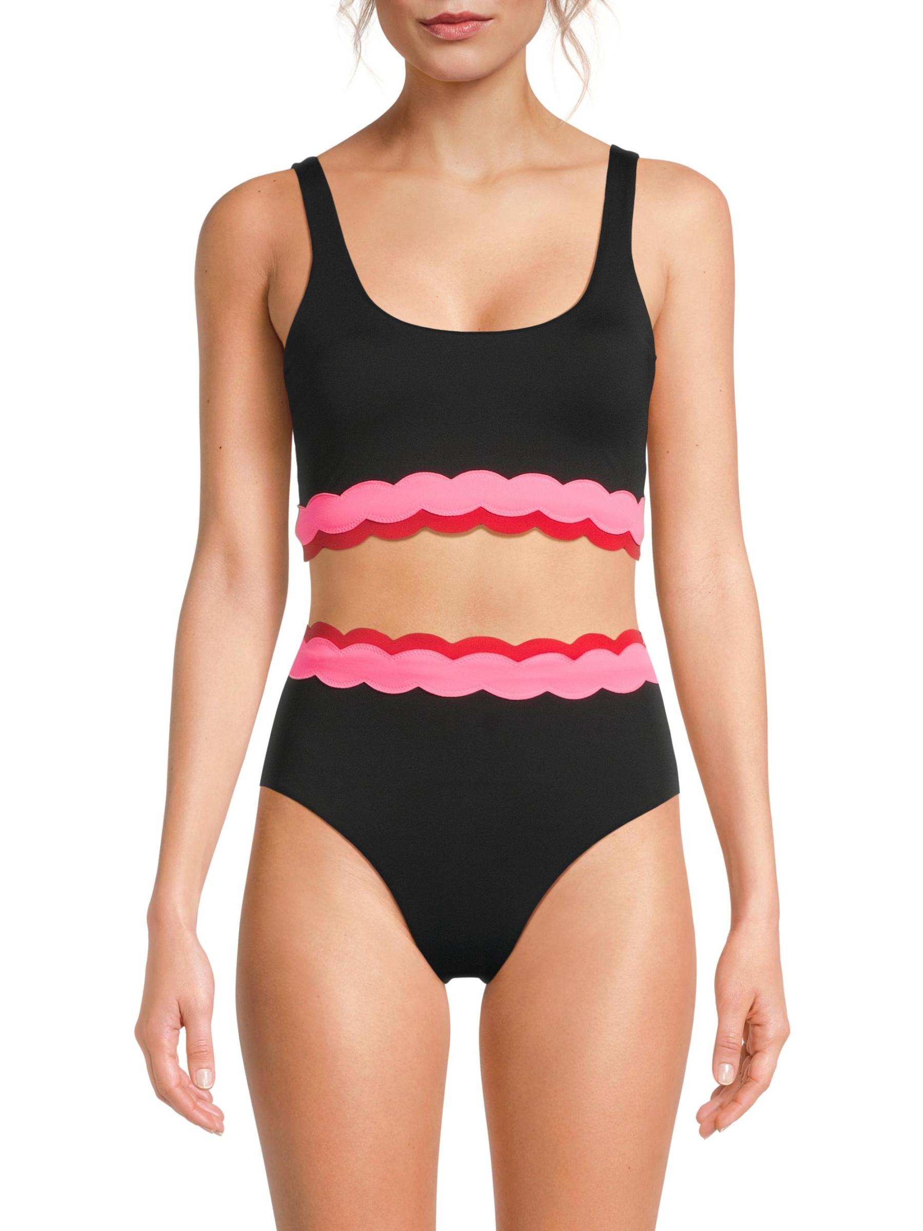 بلوزة السباحة Mackenzie من Beach Riot مصنوعة من قماش مضلع قابل للتمدد ومزينة بحاشية ملونة مزينة بالإسكالوب.