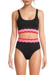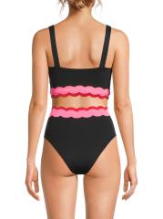 بلوزة السباحة Mackenzie من Beach Riot مصنوعة من قماش مضلع قابل للتمدد ومزينة بحاشية ملونة مزينة بالإسكالوب.رقبة مغرفة بدون أكمام تسحب 82% بوليستر/ 18% سباندكس غسيل يدوي مستوردة