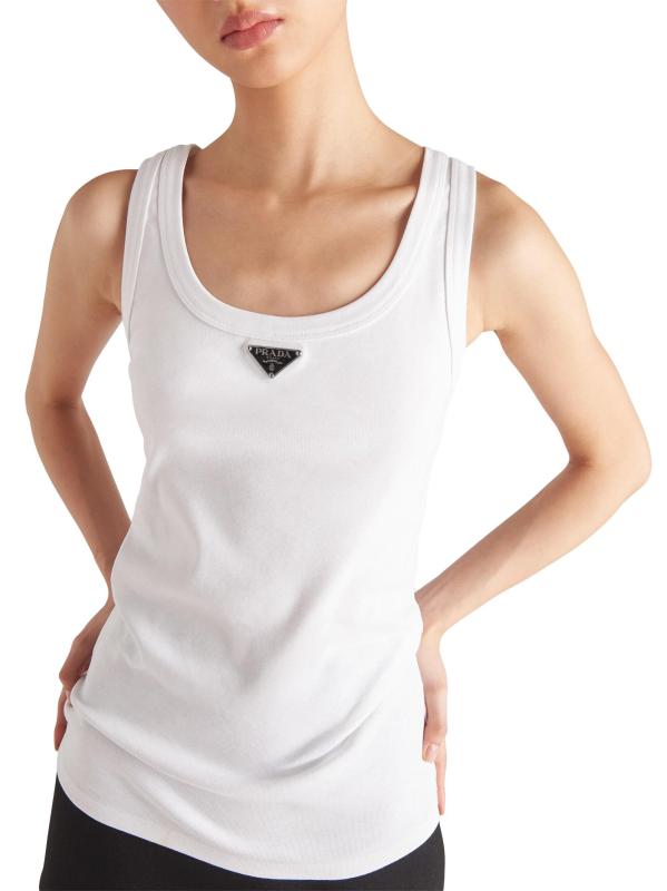 تكتسب الملابس البراغماتية أهمية وقيمة جديدة. تم تحويل هذا القميص بدون أكمام المصمم على شكل ملابس رجالية والذي تم تقديمه خلال عرض أزياء FW22 بلمسة أنثوية. تجسد ملابس برادا الأساسية التي تتميز بالصورة الظلية الضيقة رفاهية البساطة. يبرز شعار المثلث في الأعلى.مقاس نحيف رقبة مغرفة شعار مثلث معدني مطلي بالمينا مستوردة