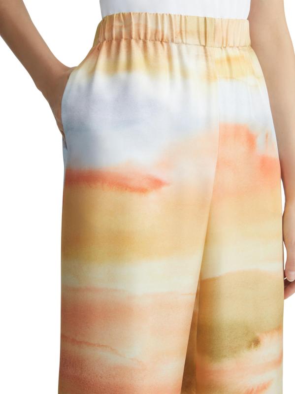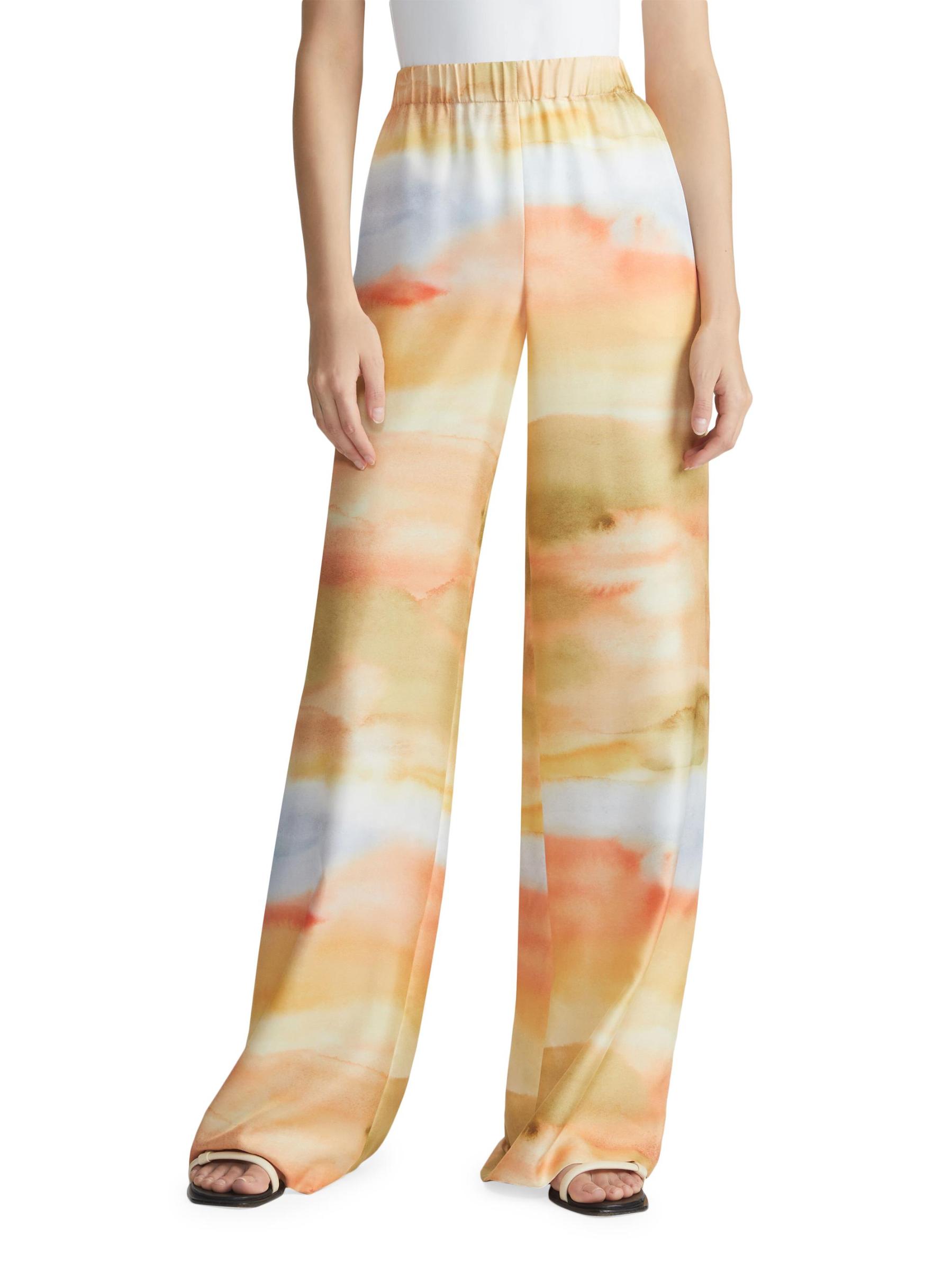 يتميّز بنطال ريفرسايد سهل الارتداء من لافاييت 145 نيويورك بطبعة هورايزون المصبوغة بشكل حالم، ويتميز بجيوب جانبية عند الدرزات وتصميم واسع الساق.حزام خصر مطاطي جيوب جانبية على درزات حرير بنسبة 100% تنظيف جاف مستوردة