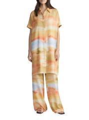 يتميّز بنطال ريفرسايد سهل الارتداء من لافاييت 145 نيويورك بطبعة هورايزون المصبوغة بشكل حالم، ويتميز بجيوب جانبية عند الدرزات وتصميم واسع الساق.