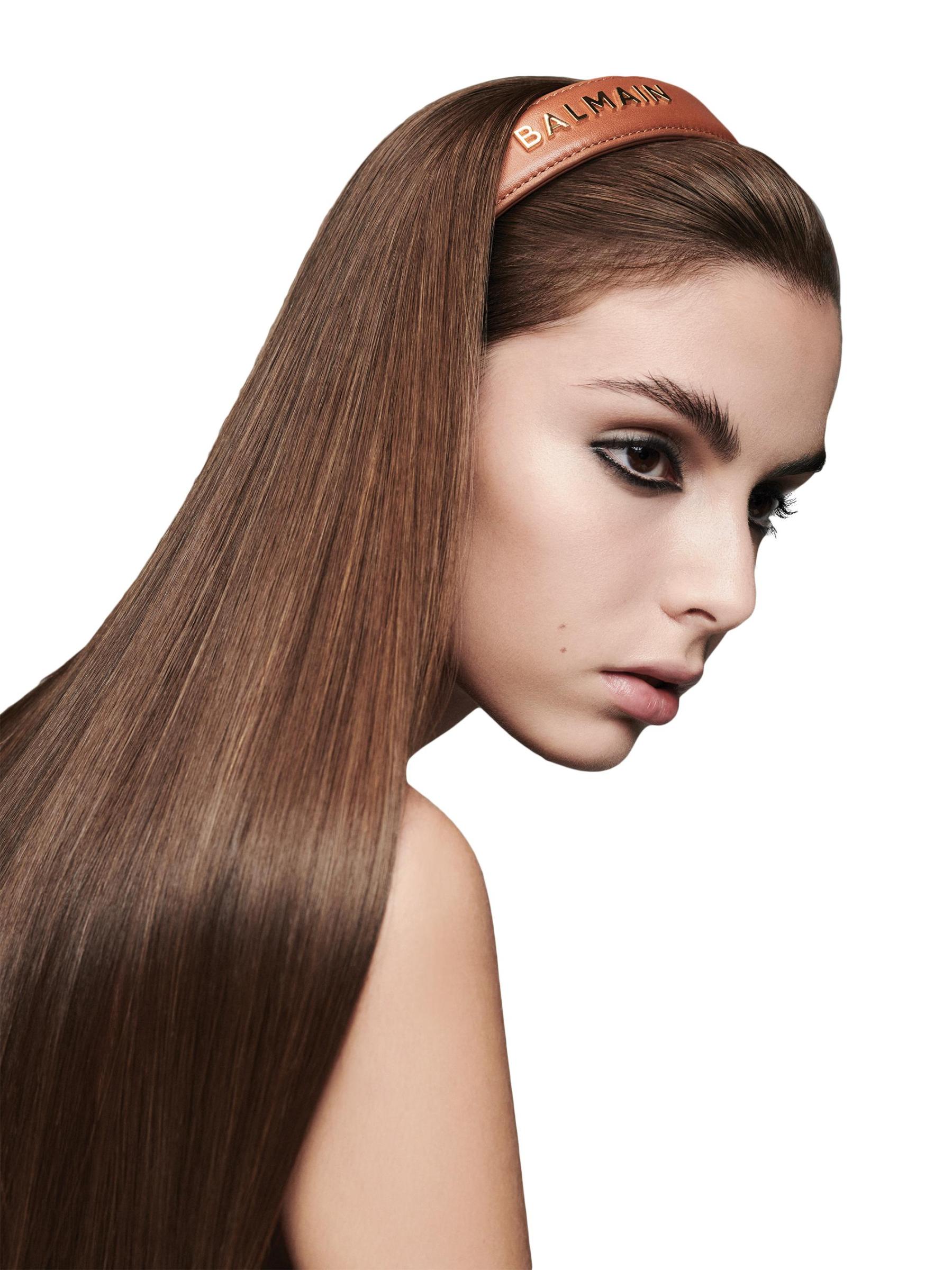 صففي الشعر حسب الرغبة. زيّنيها بطوق الرأس المصنوع من الجلد.