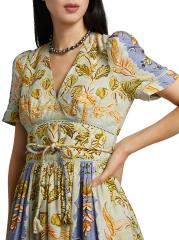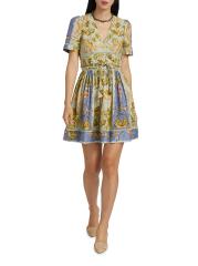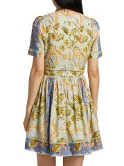 فستان قصير من مزيج الكتان بطبعة رومانية