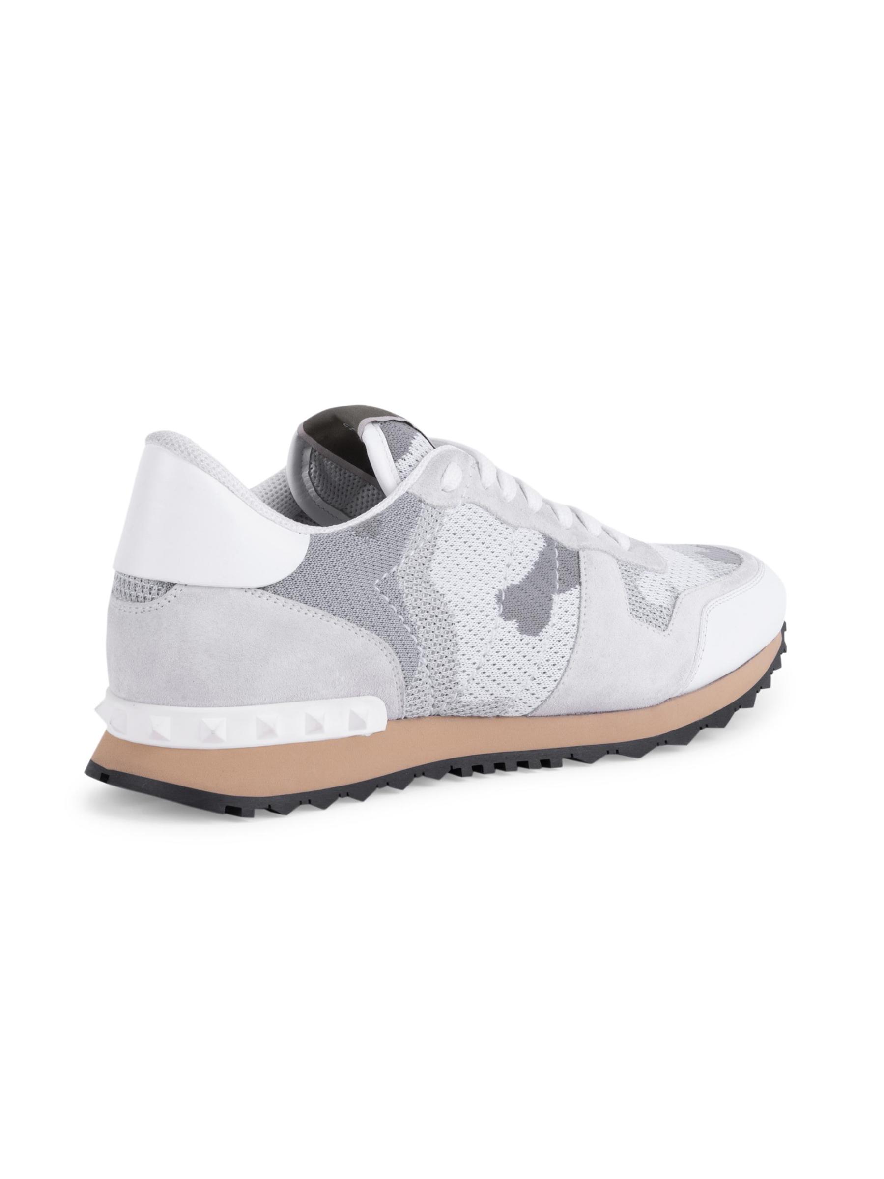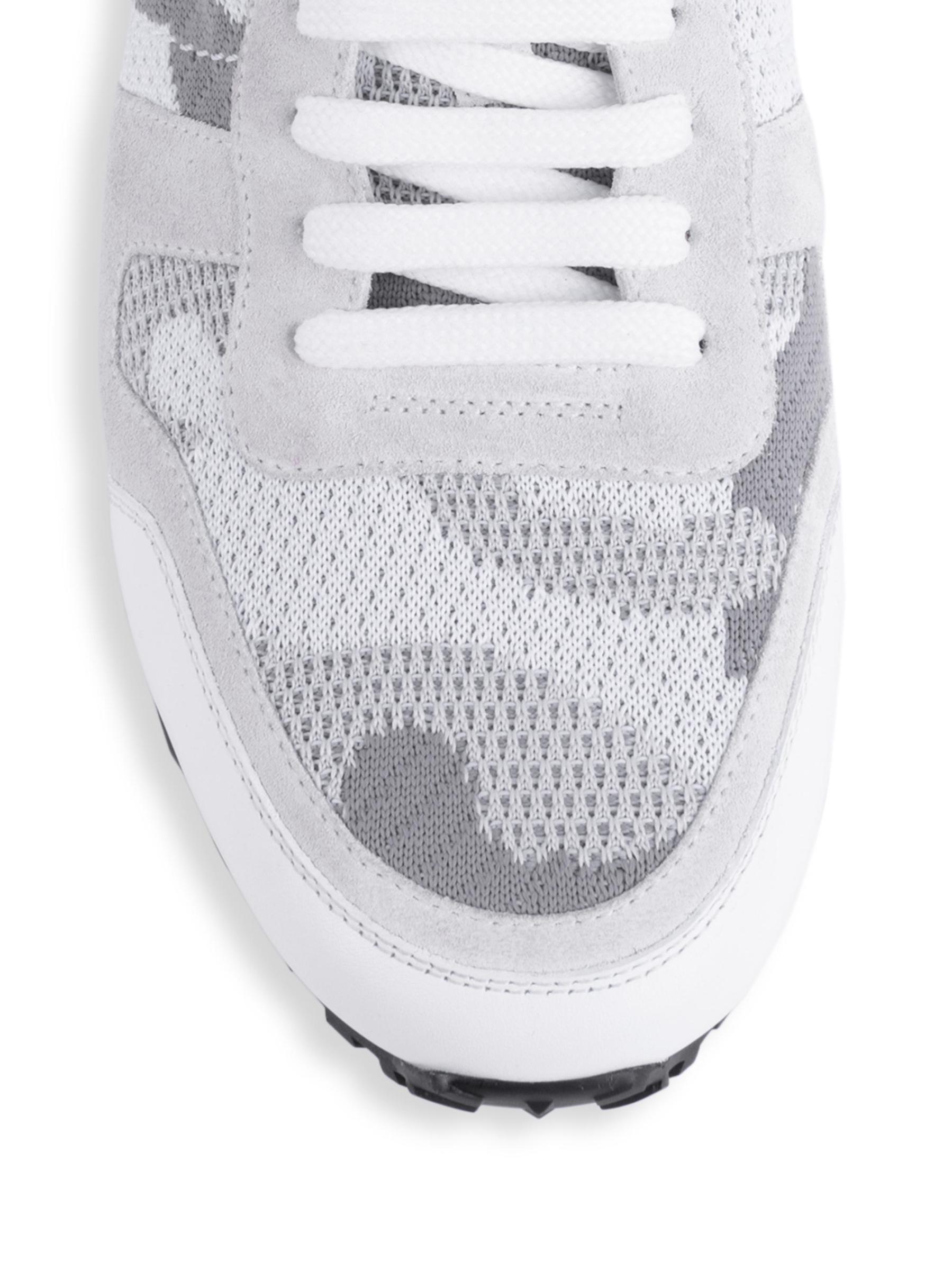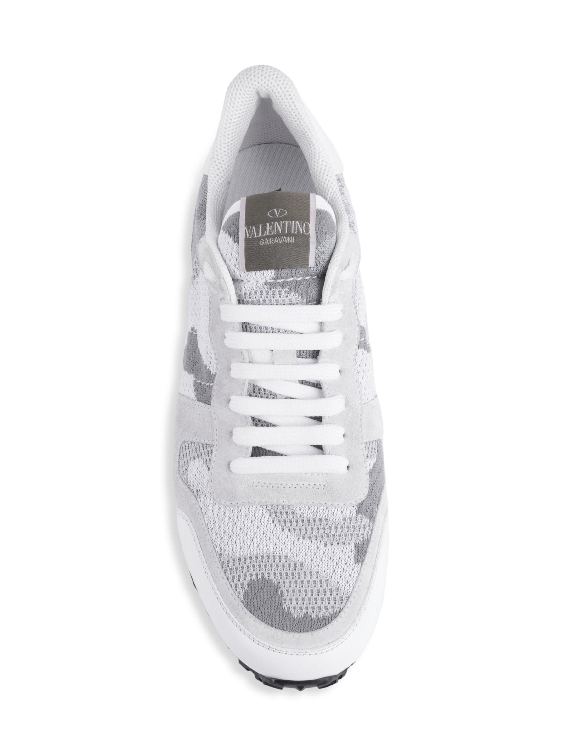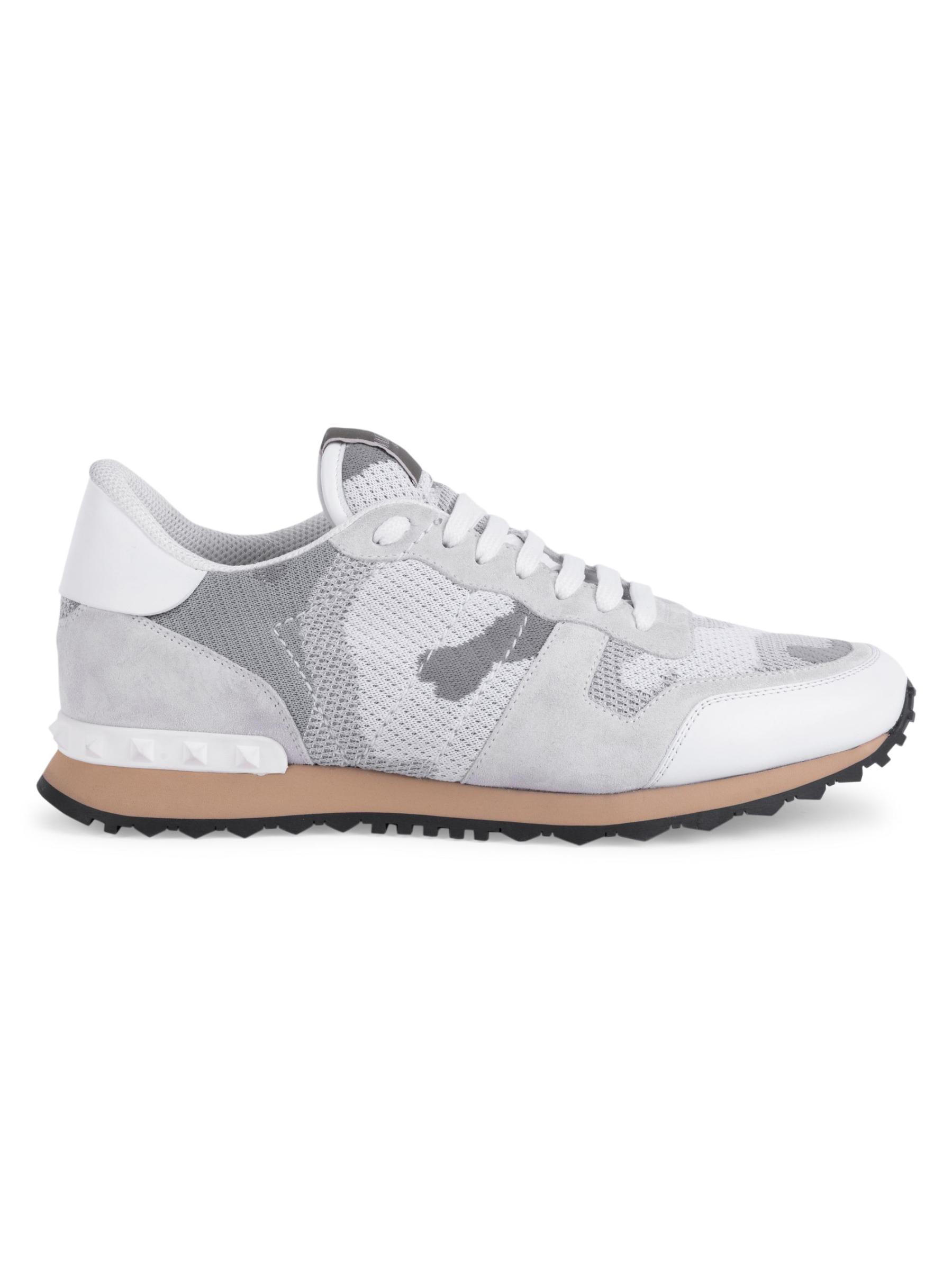 من مجموعة روك رانر. حذاء رياضي متعدد الوسائط بألواح مموهة يتباهى بأزرار الروك الأيقونية.الجزء العلوي من البوليستر/الجلد إصبع اللوز نمط بأربطة نعل بلاستيكي صُنع في إيطاليا