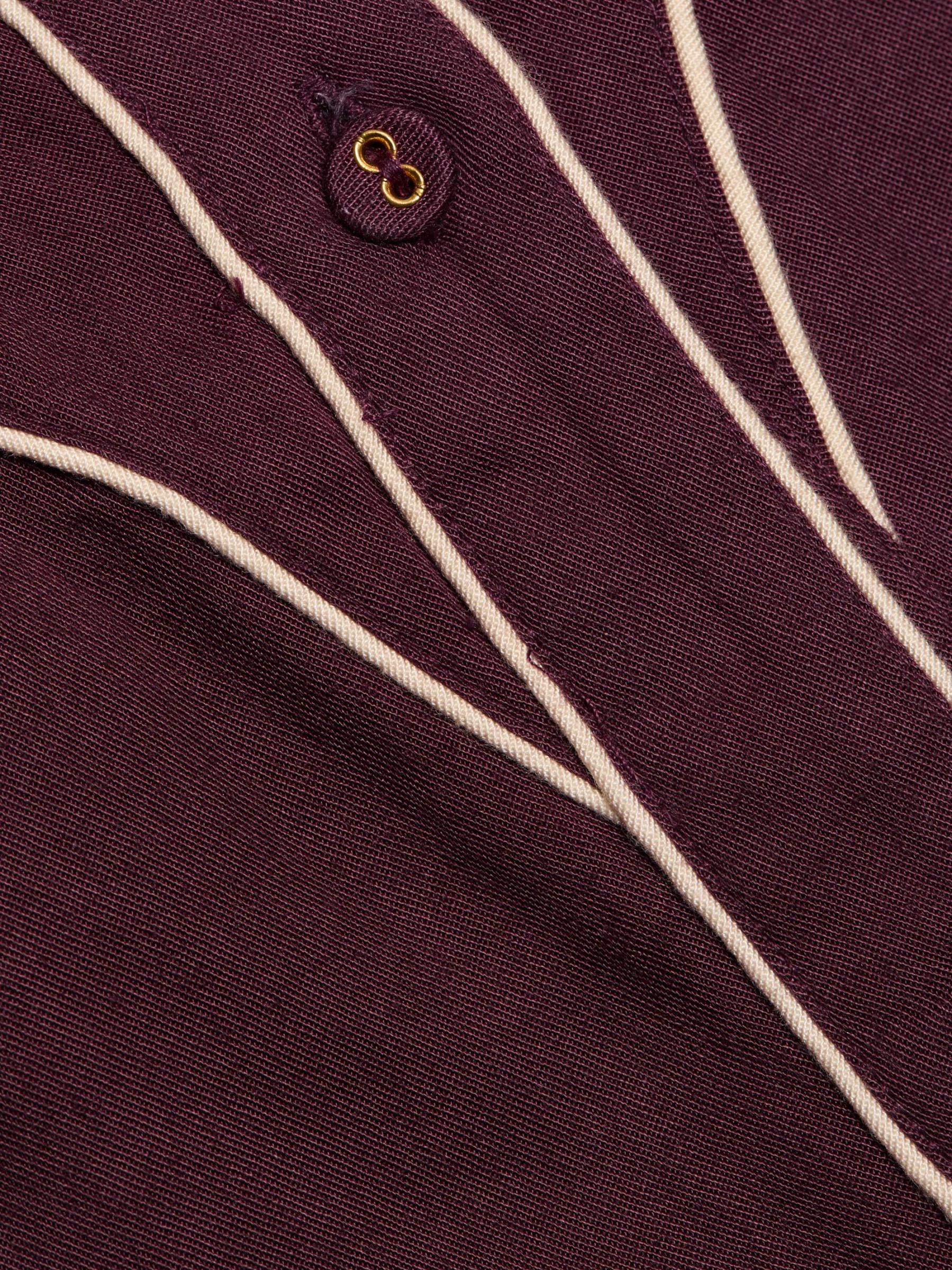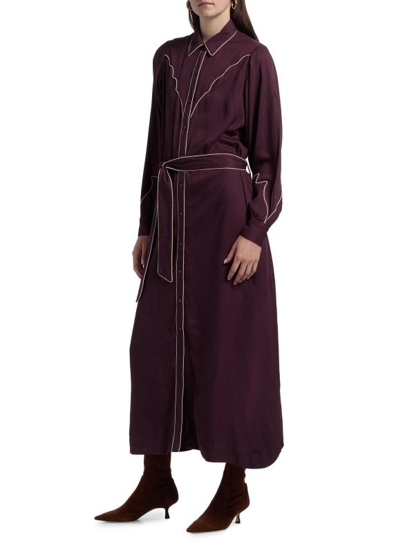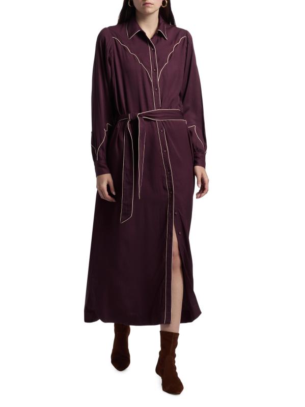 تم تصميم قميص روديو الفضفاض من Carolina K بأنابيب متباينة وياقة مدببة وربطة على الخصر.