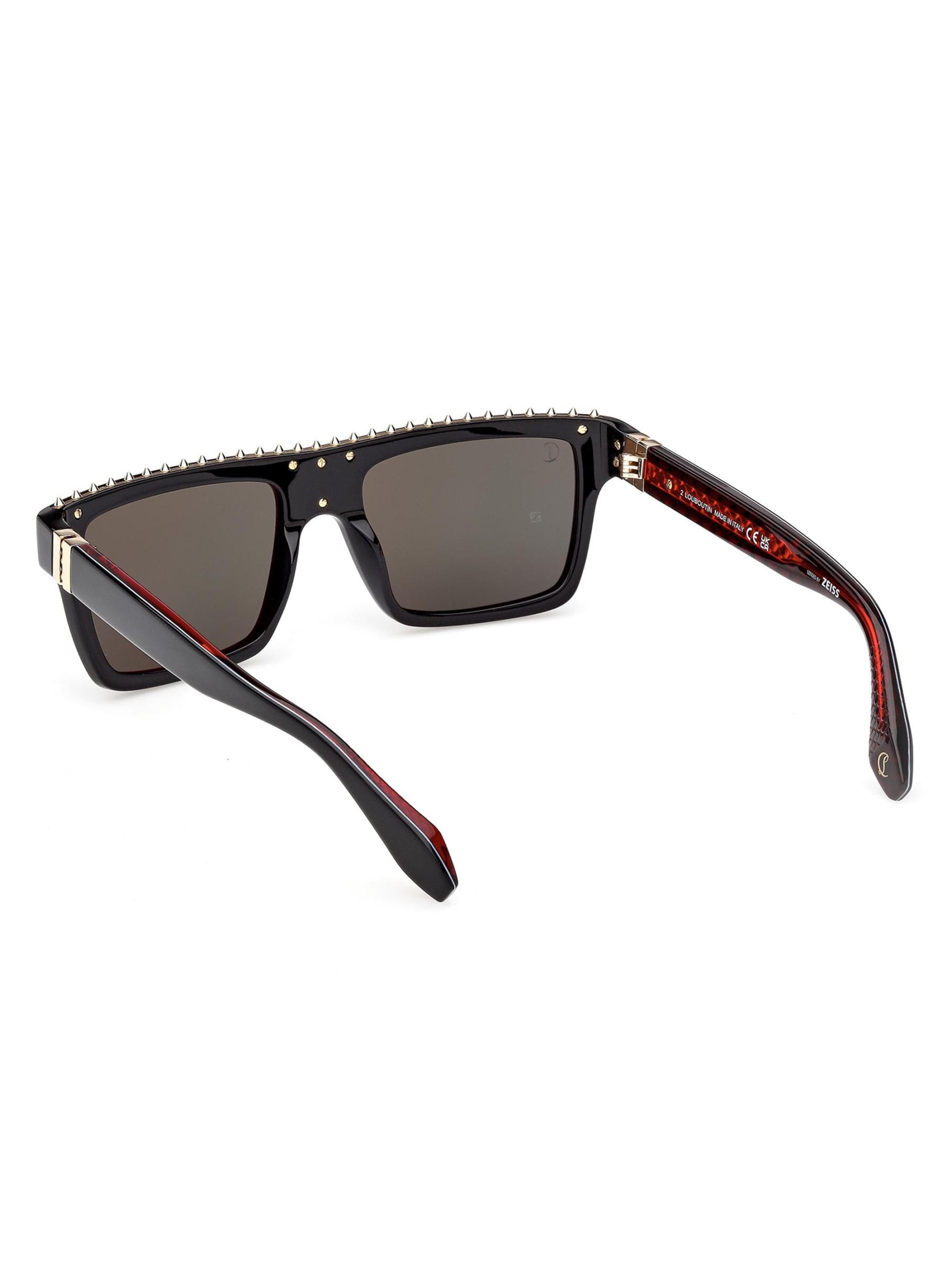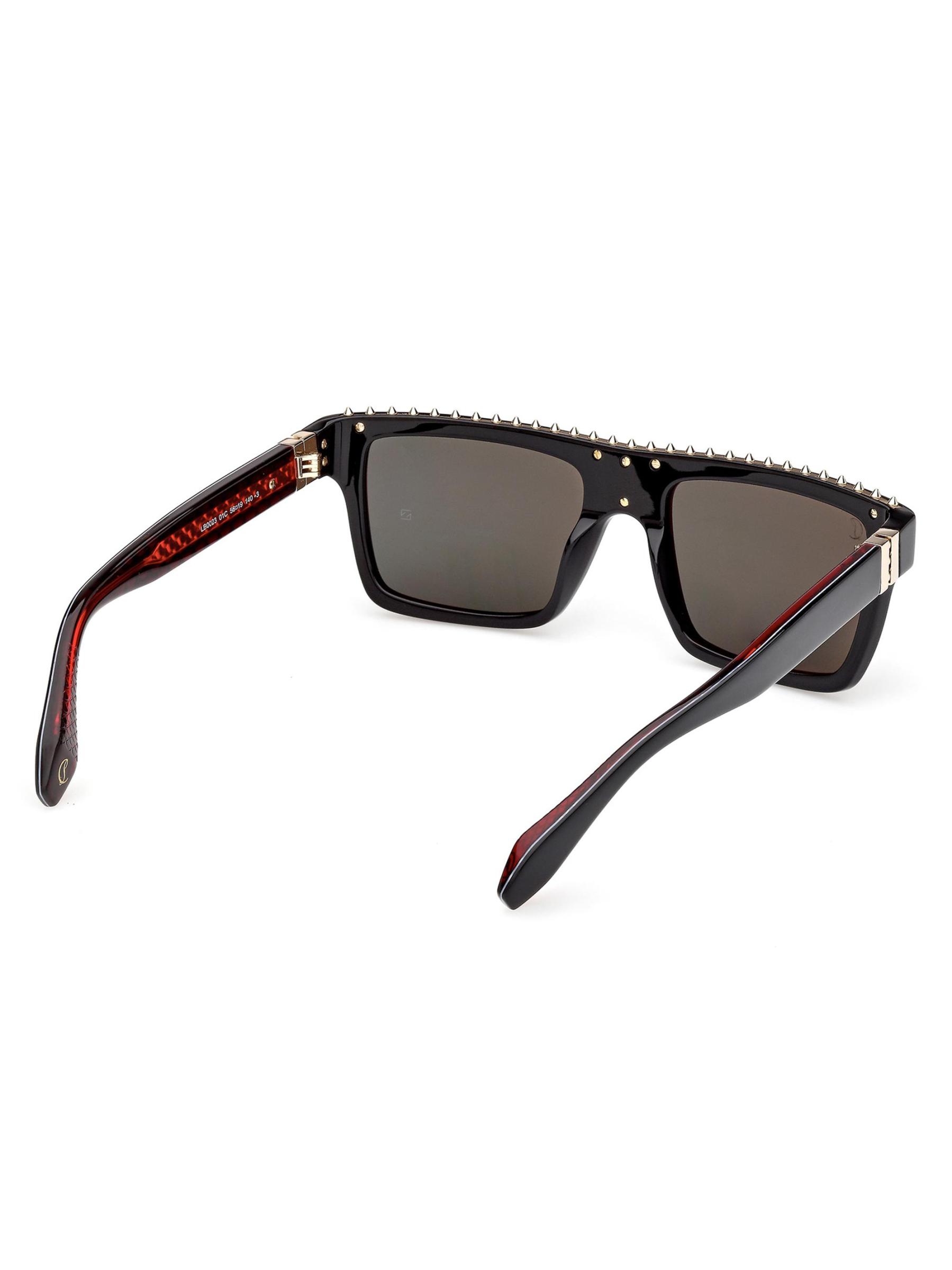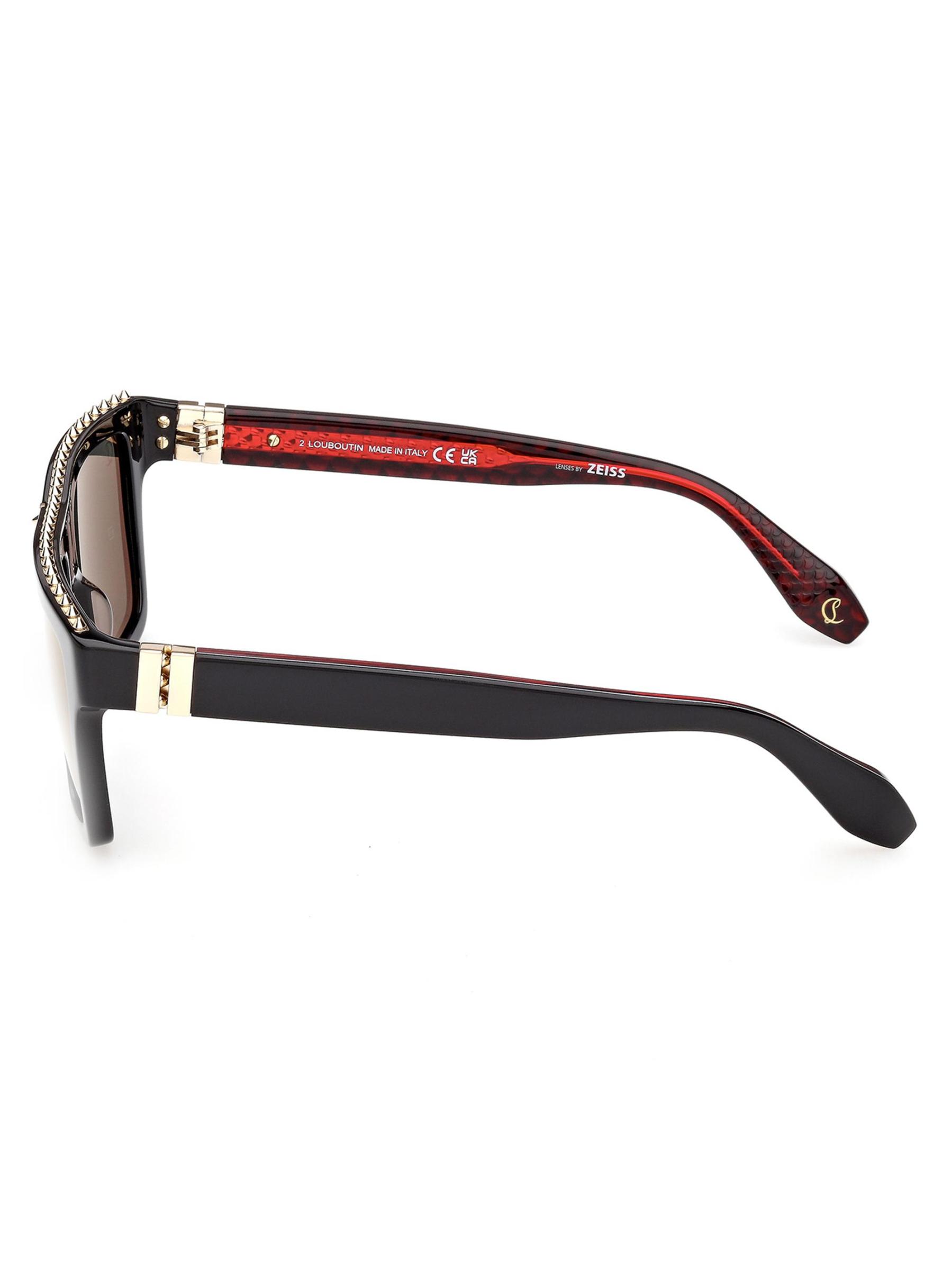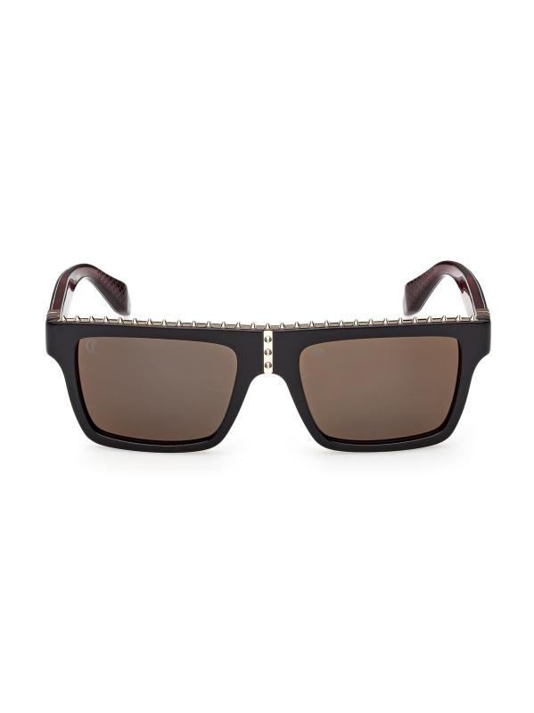 تتميز نظارات رولر الشمسية من كريستيان لوبوتان بتصميم درع كبير الحجم مع لمسة نهائية مصقولة. ويتميّز هذا الأسلوب بتفاصيل مرصّعة باللون الذهبي على الحاجب وفي كل صدغ.