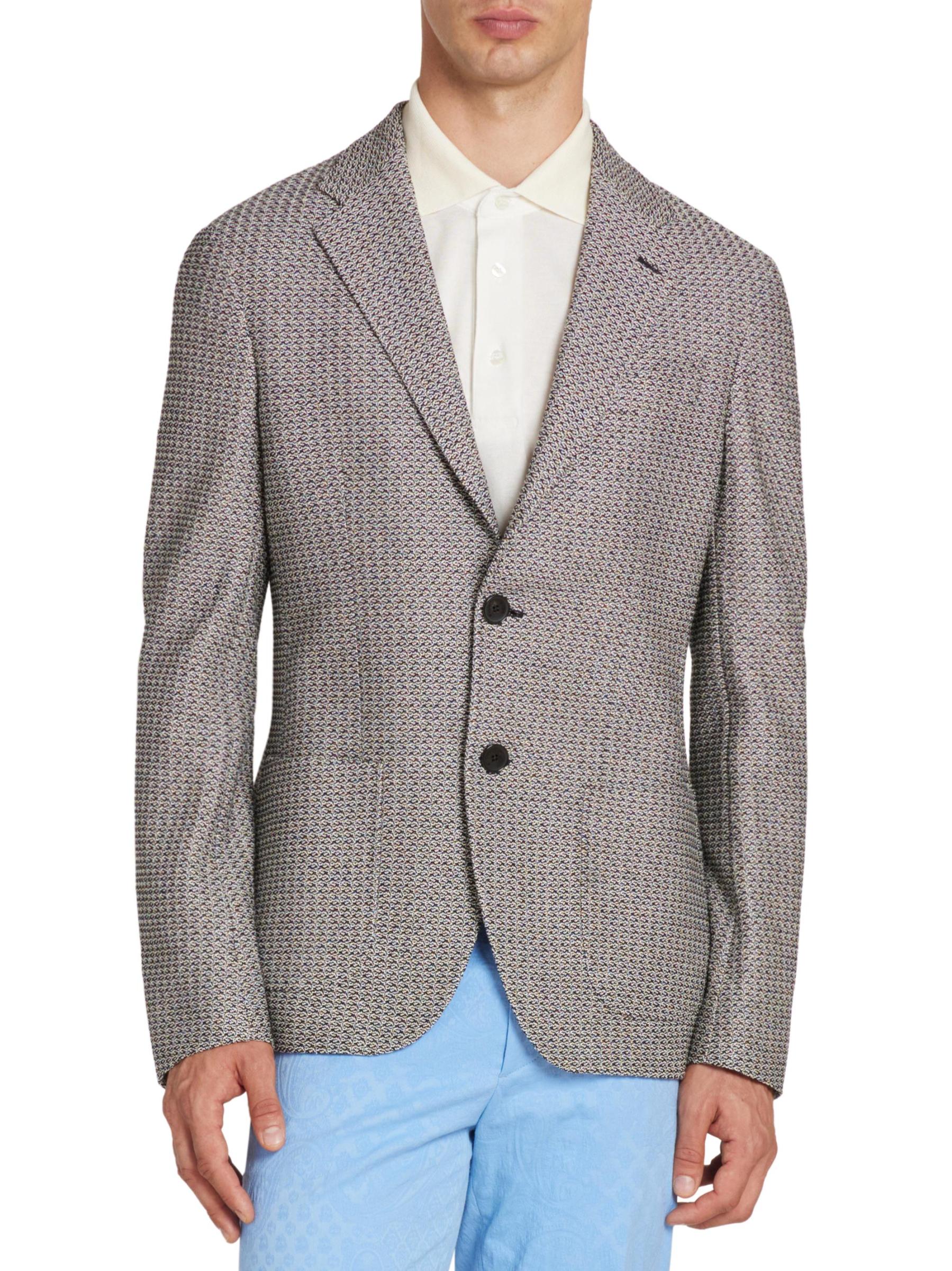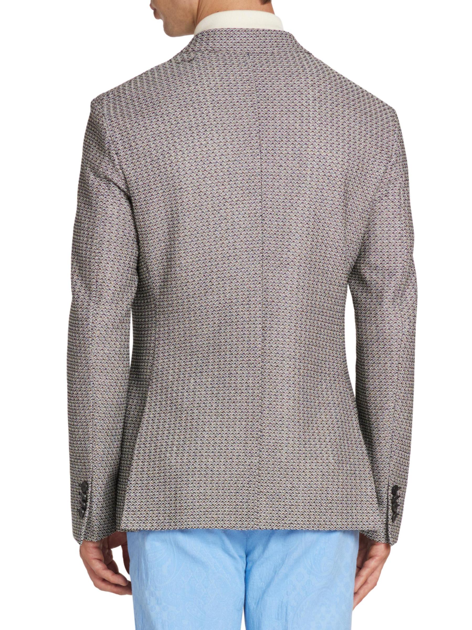 تم تصميم الجاكيت الرياضي المصنوع من القطن Roma من Etro في إيطاليا بنمط هندسي منسوج ومصمم في صورة ظلية ضيقة أحادية الصدر.