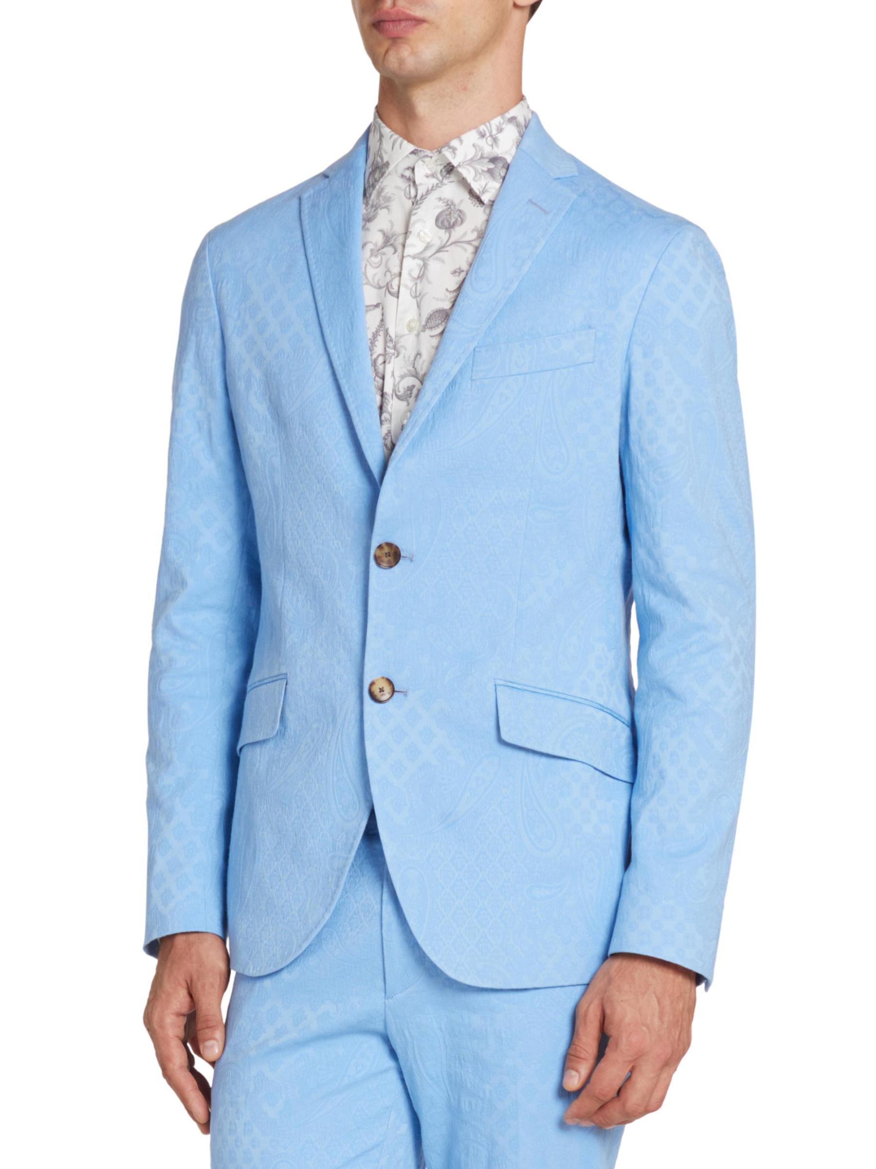 صُنعت سترة روما الرياضية أحادية الصدر من إيترو في إيطاليا من القطن وتتميز بجاكار بيزلي متناسق اللون.
