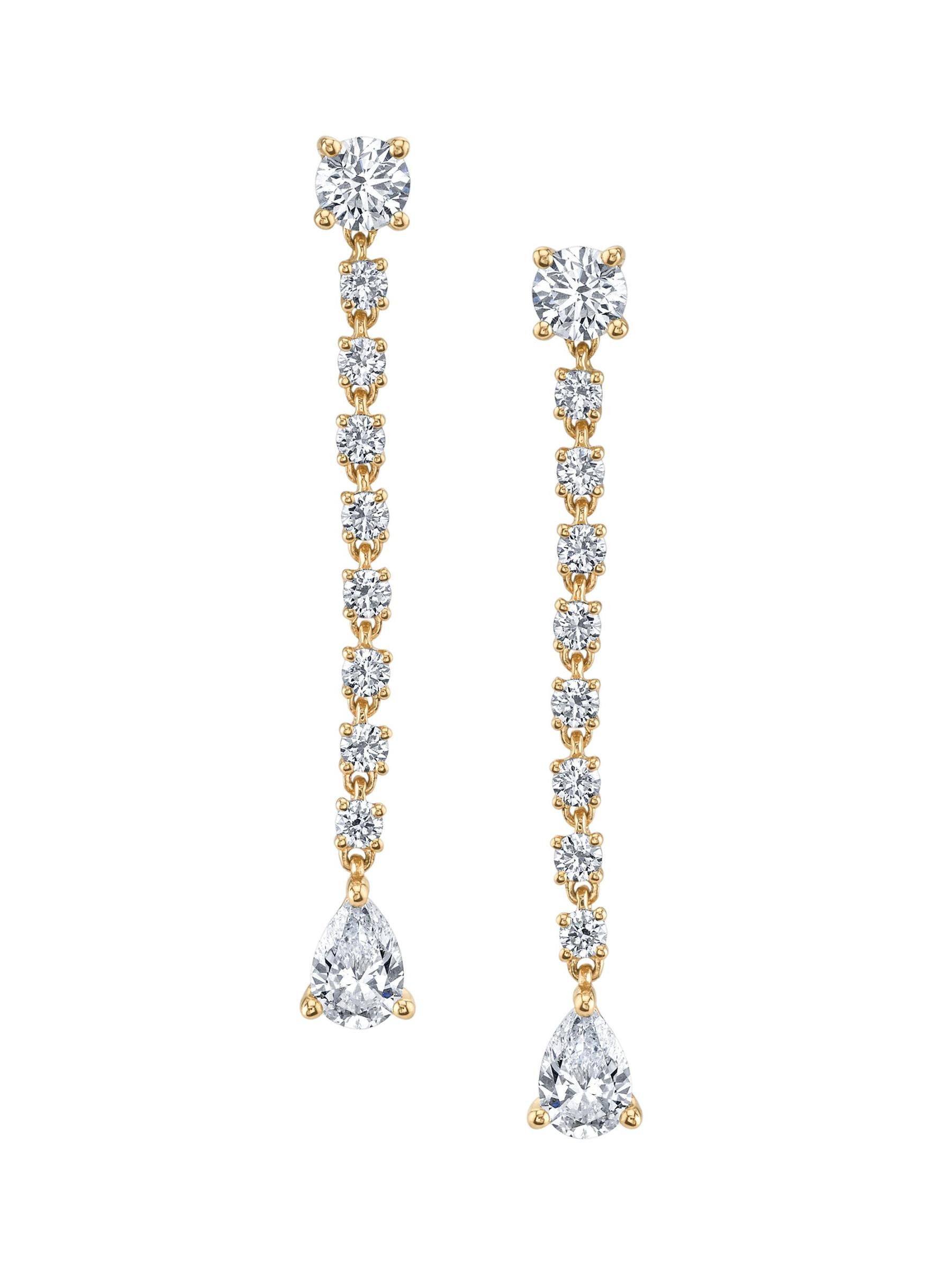 من مجموعة Ropes. تتألق أقراط Anita Ko المتدلية من الذهب الأصفر عيار 18 قيراطًا مع الماس المستدير والمقطع على شكل كمثرى. تشتهر مصممة المجوهرات الحائزة على جوائز، التي تتخذ من لوس أنجلوس مقراً لها، بقطعها البراقة والمعاصرة.