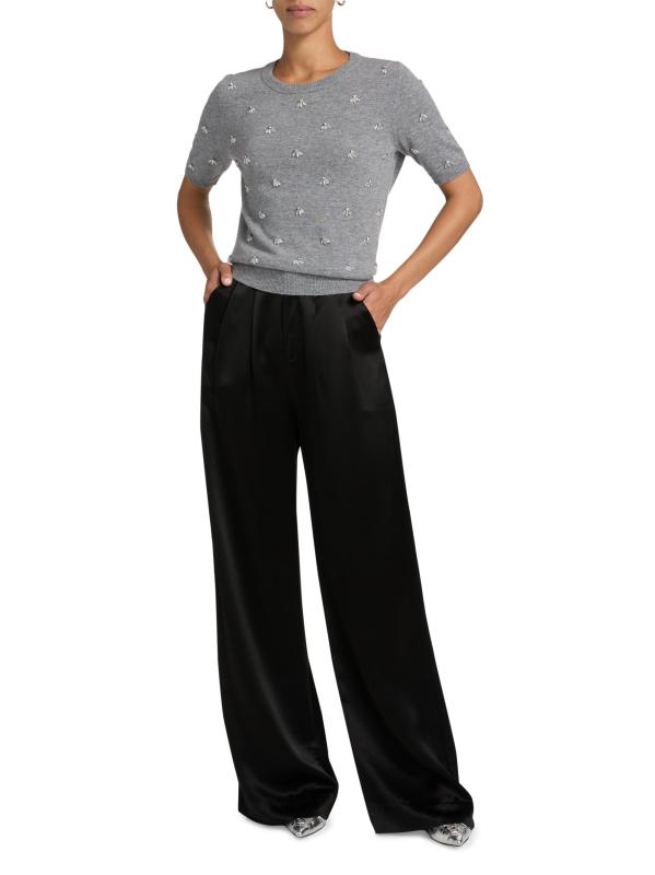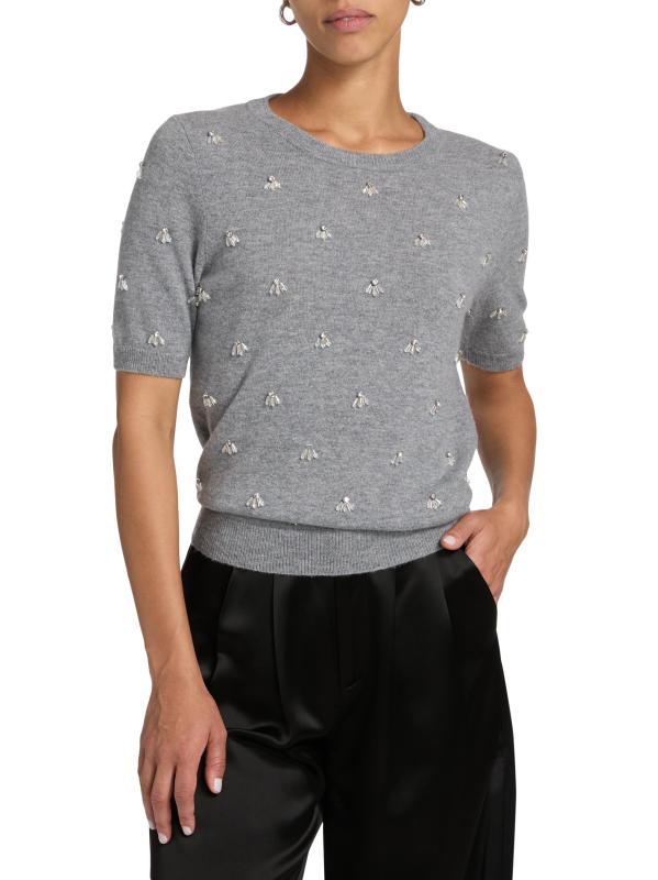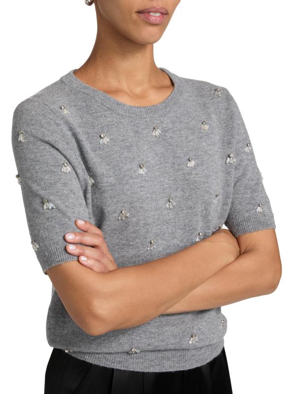 بلوزة Rosalyn ذات الأكمام القصيرة من Milly مصنوعة من مزيج محبوك وتتميز بزخارف حجر الراين.رقبة مستديرة أكمام قصيرة تقليم مضلع تسحب 48% نايلون/ 27% فيسكوز/ 20% صوف/ 5% كاشمير تنظيف جاف مستوردة