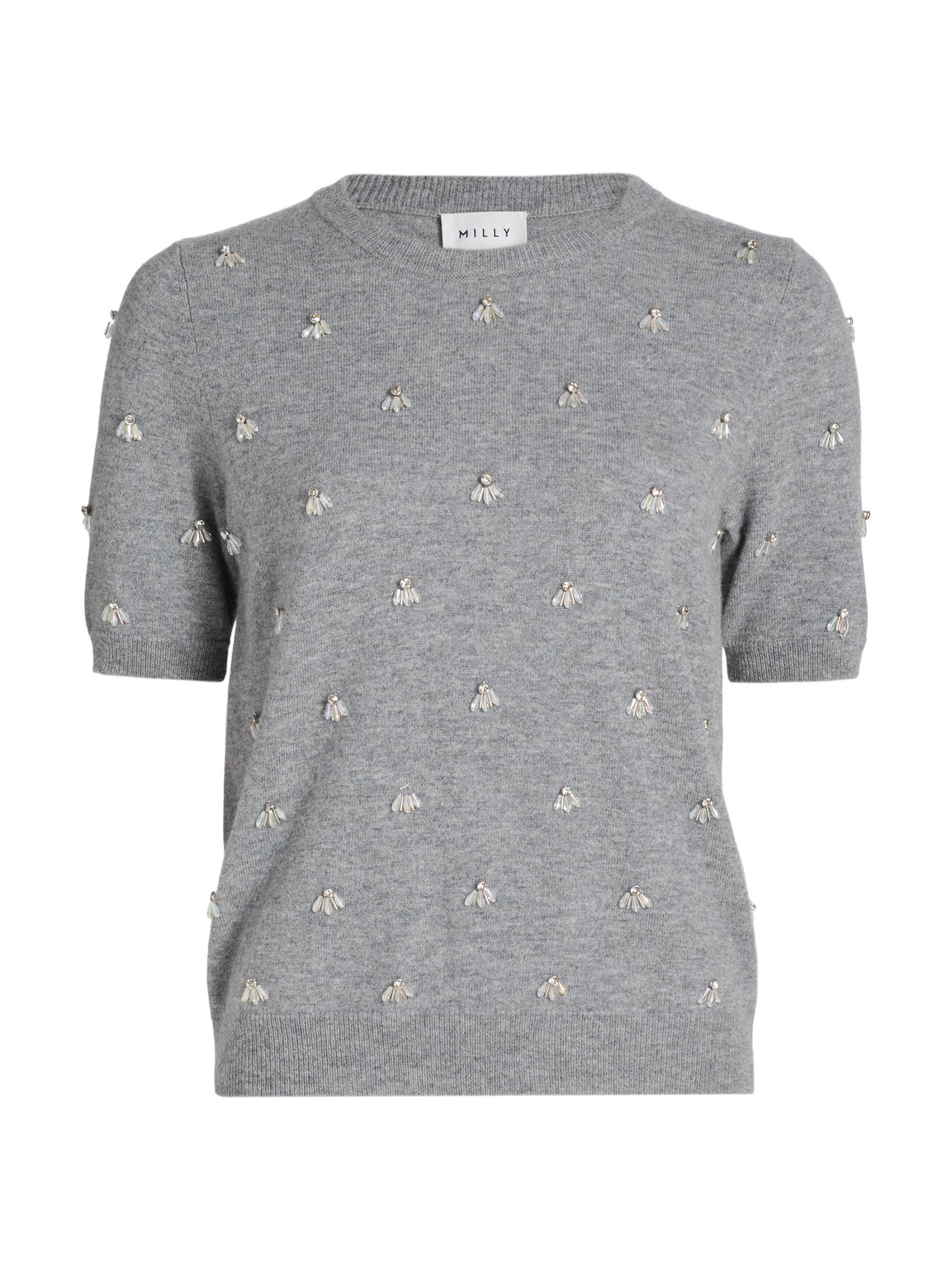 بلوزة Rosalyn ذات الأكمام القصيرة من Milly مصنوعة من مزيج محبوك وتتميز بزخارف حجر الراين.