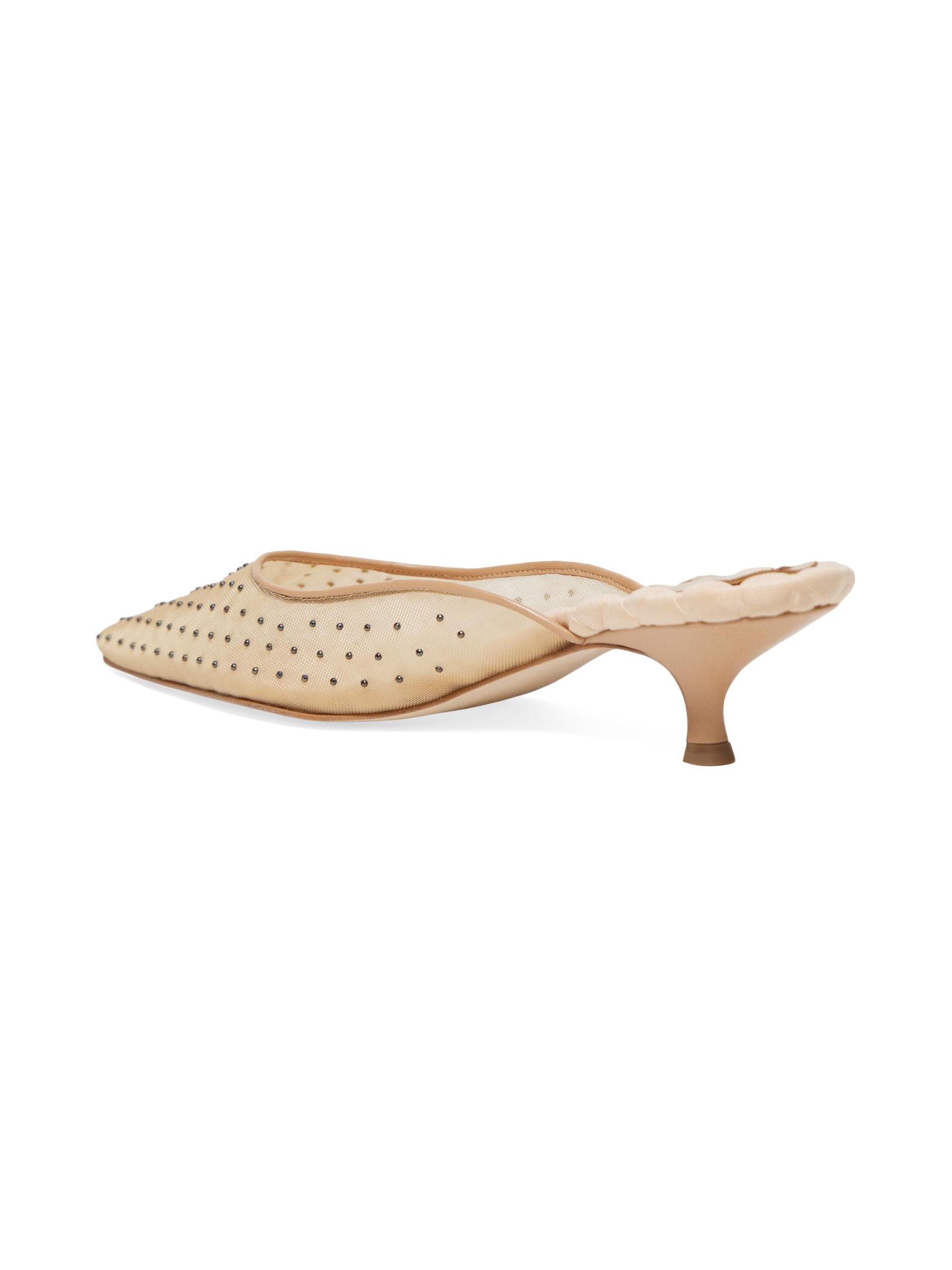صُنعت هذه البغال الوردية من Aera من قماش شبكي مزين بالأزرار وتتميز بمقدمة مدببة وكعب صغير.