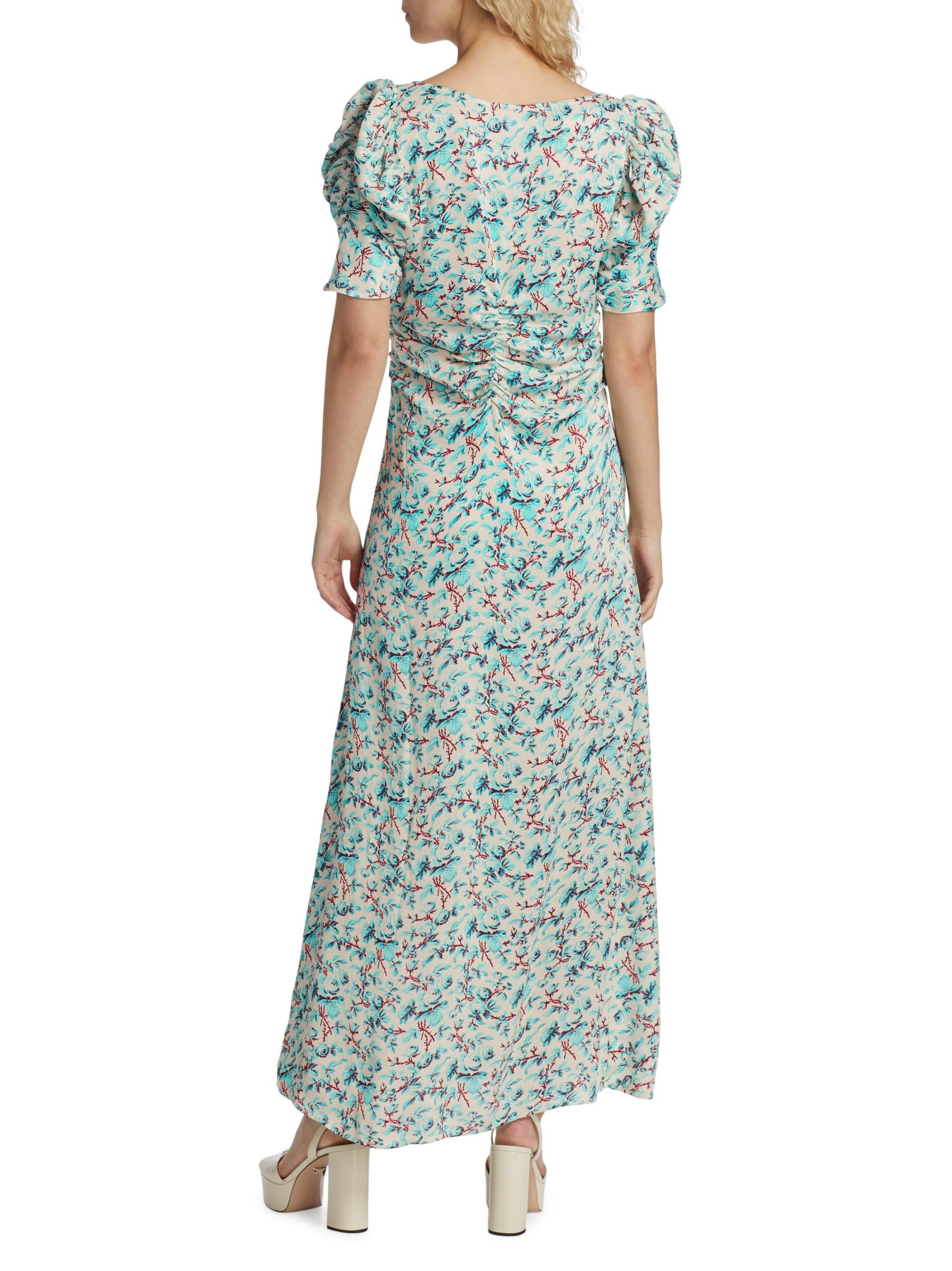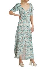 فستان ماكسي مكشكش بنقشة الورود