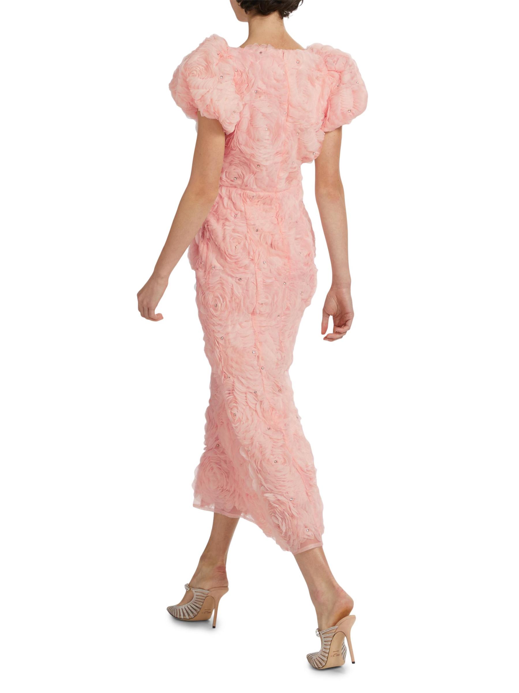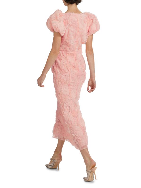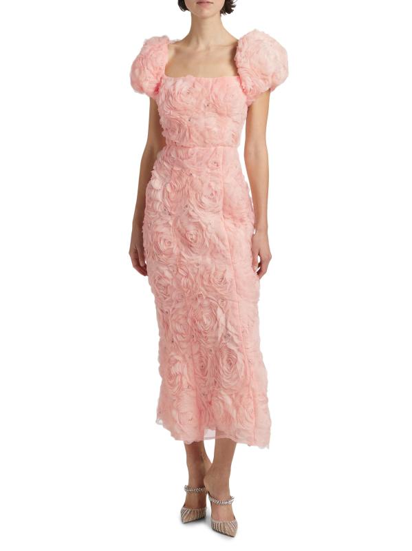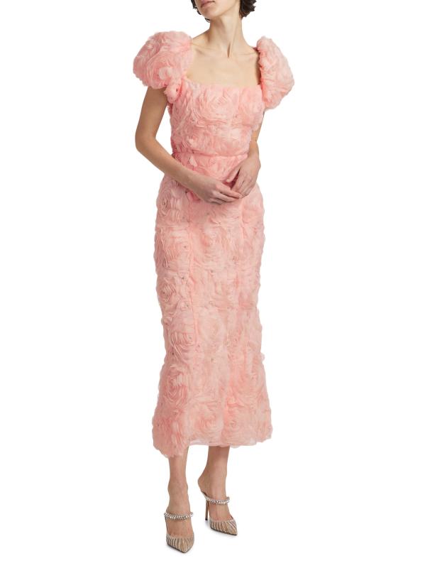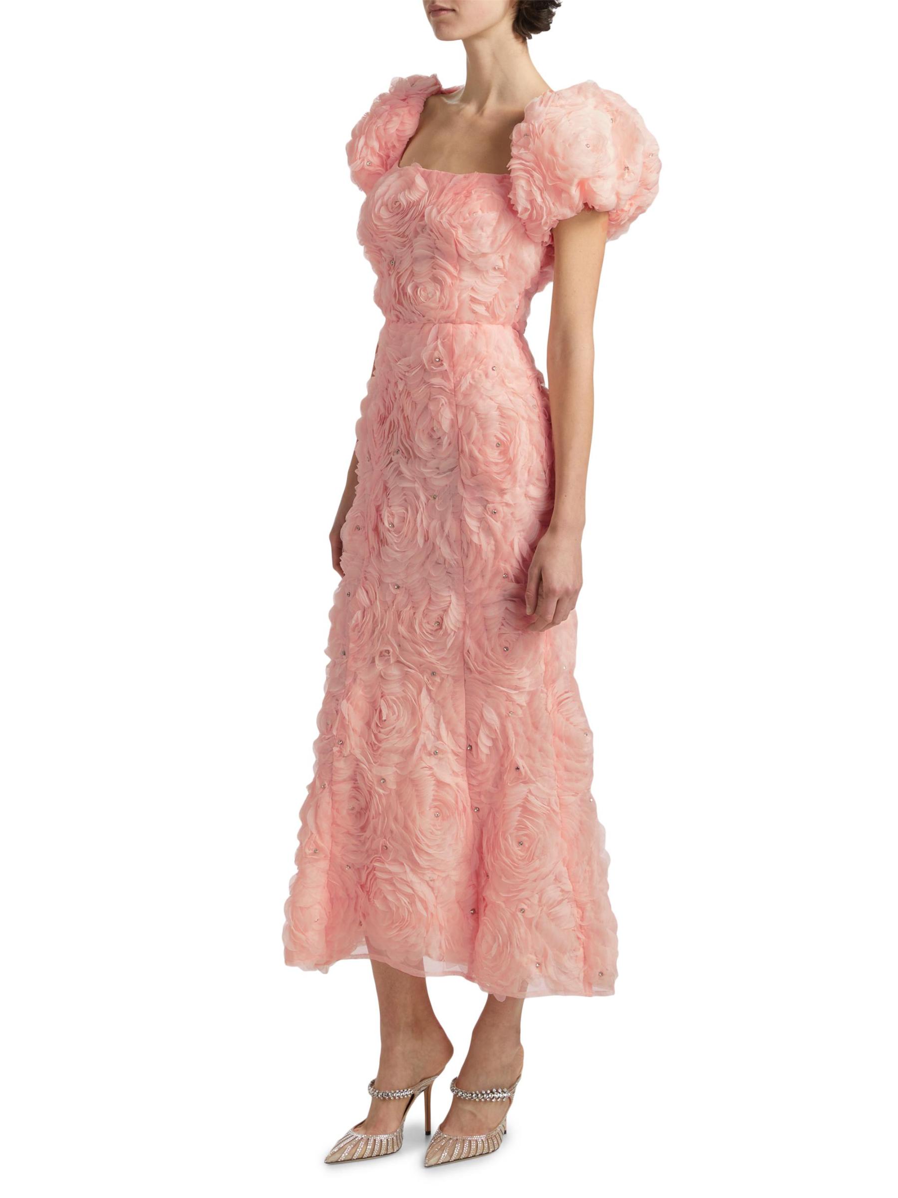 من مجموعة العروس والضيوف. يتميز فستان Rosella المتوسط من Elliatt بتنورة ساحرة مضيئة وإطار رقبة مربعة بأكمام منفوخة ومجموعات زهرية مزخرفة.