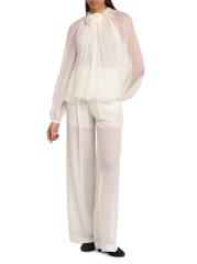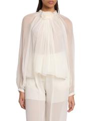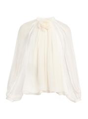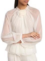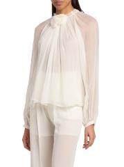 تزين وردة منقوشة خط العنق لهذه البلوزة الحريرية الشفافة من Alberta Ferretti.