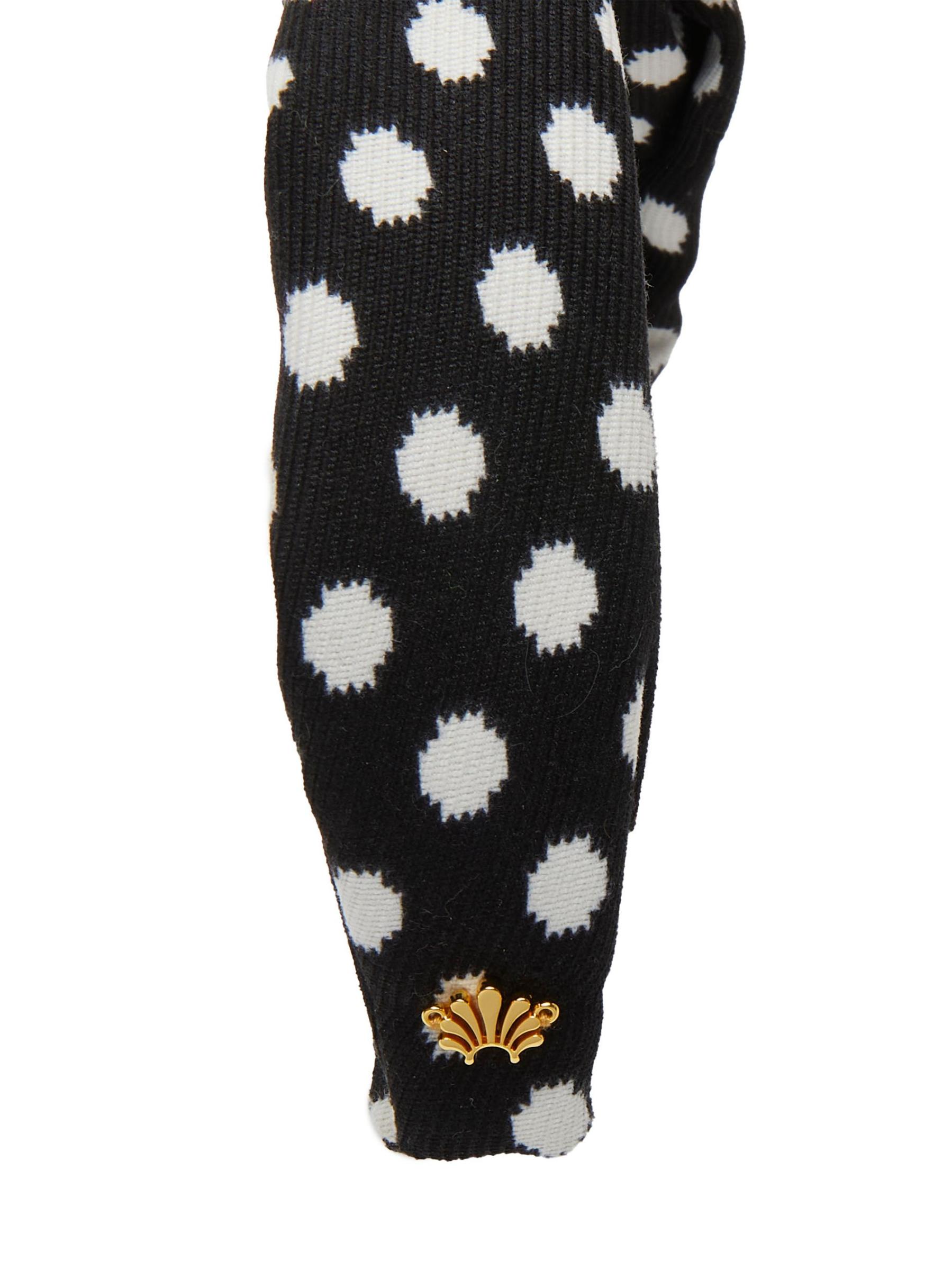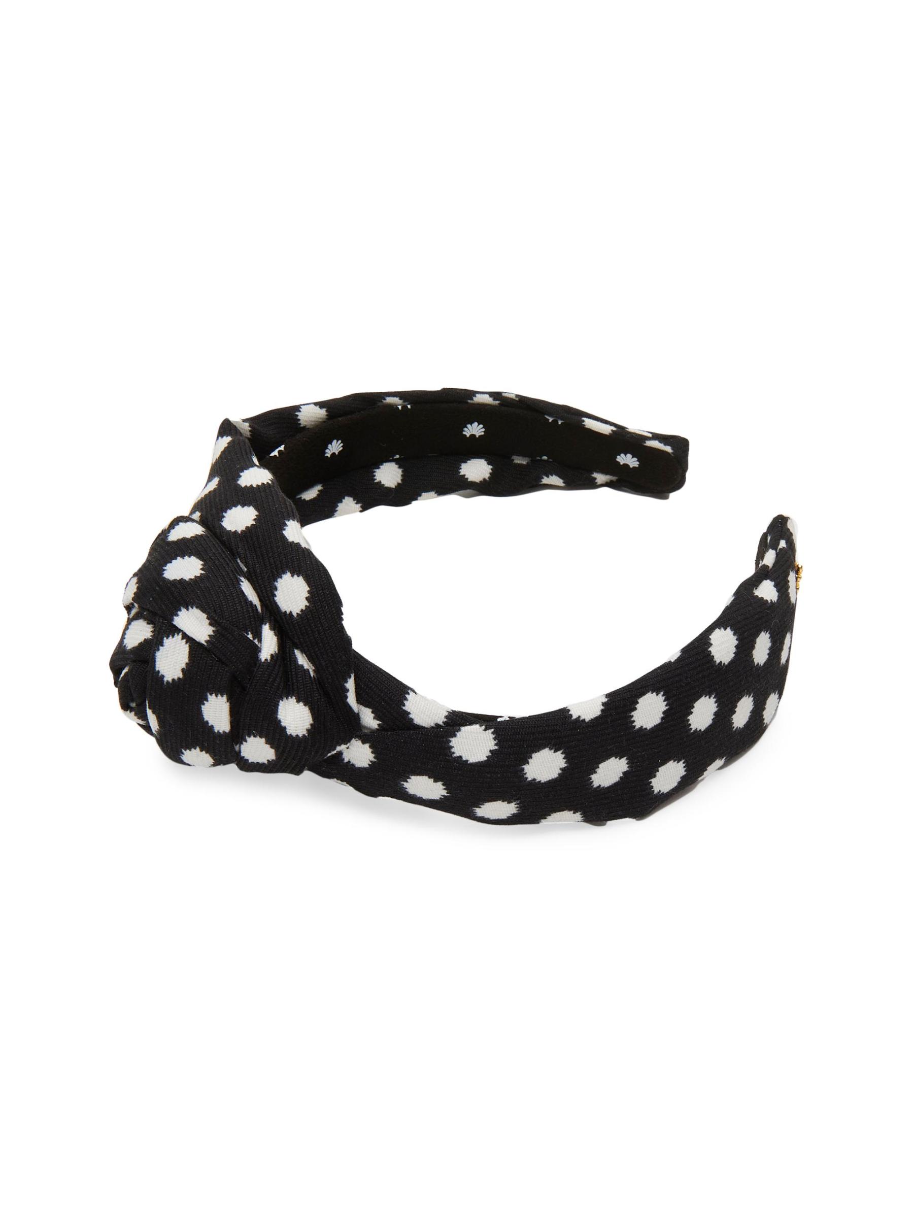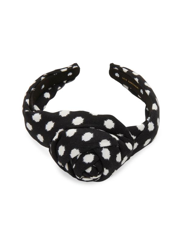 يتميز طوق الرأس هذا المنقط من Lele Sadoughi بشعار الماركة ووردة مجمعة لإطلالة على عقدة علوية.