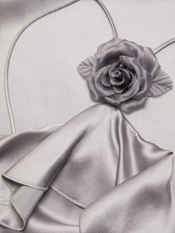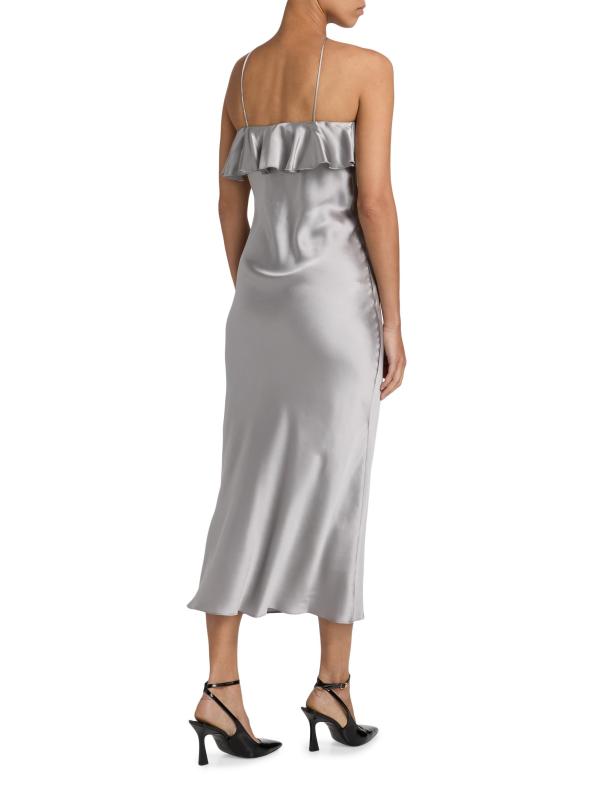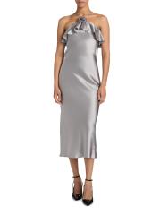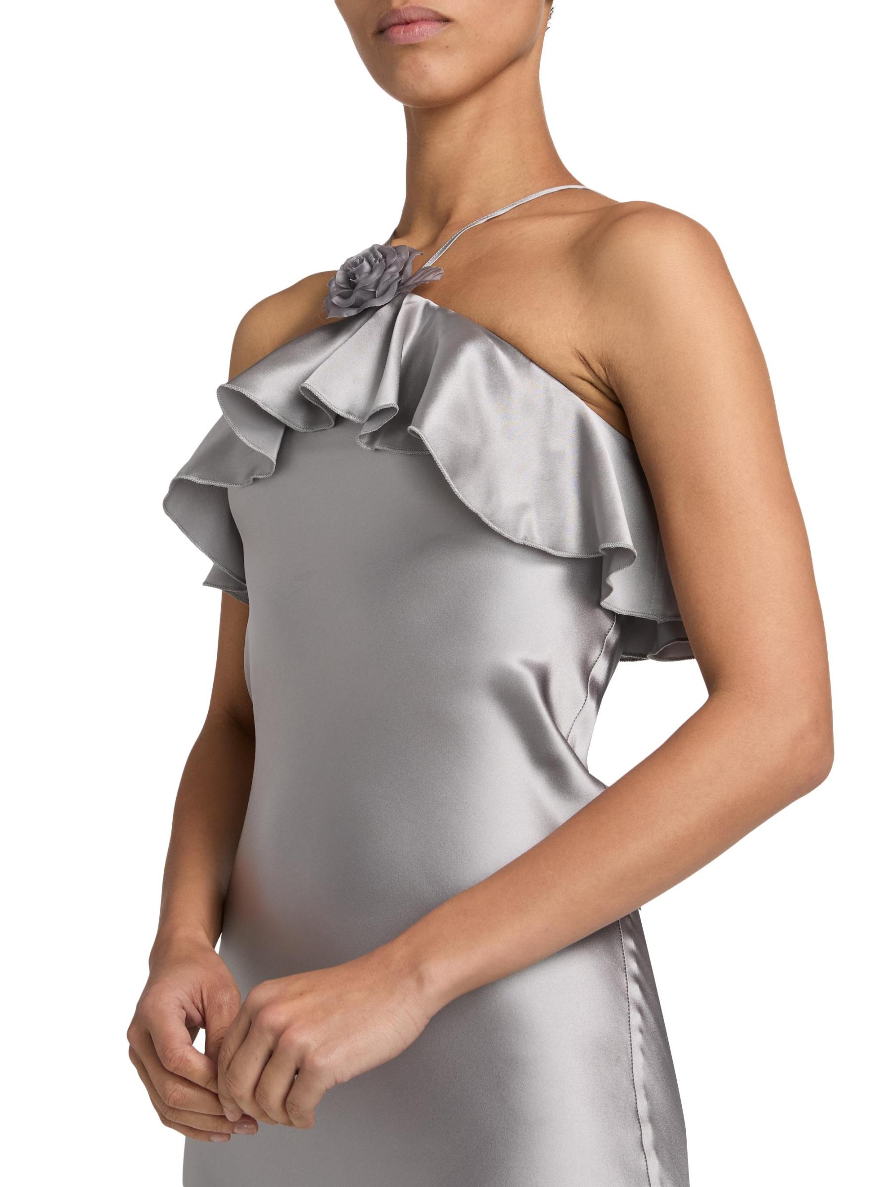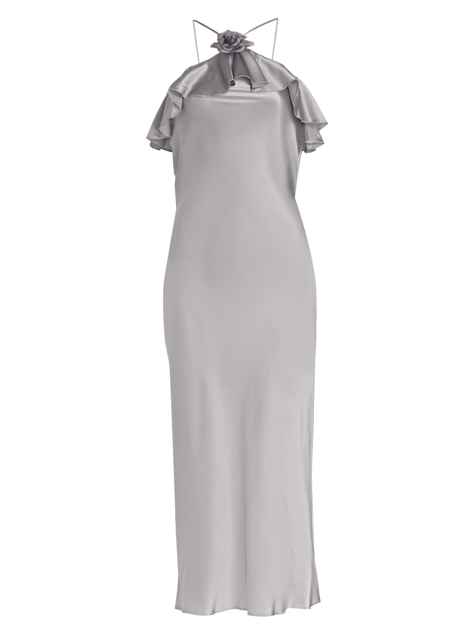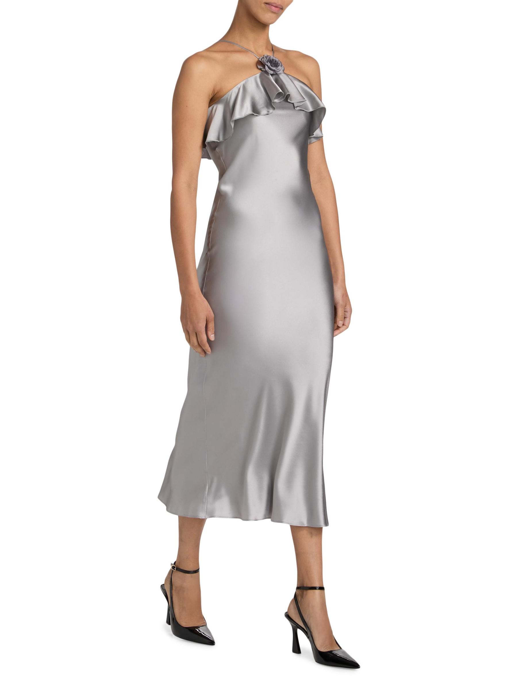 فستان روزيت حريري متوسط الطول برقبة رسن