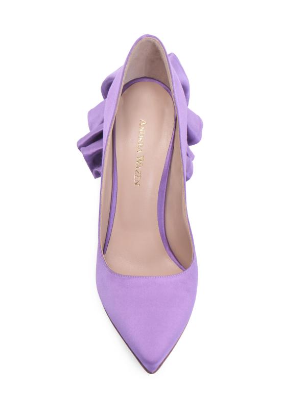 تتميّز أحذية Rouches من Andrea Wazen بتصميم كلاسيكي مدبب عند الأصابع، وتتميّز بتفاصيل مكشكشة عند الكعب.نقطة إصبع القدم سهل الارتداء الجزء العلوي من الساتان نعل جلدي صُنع في إيطاليا