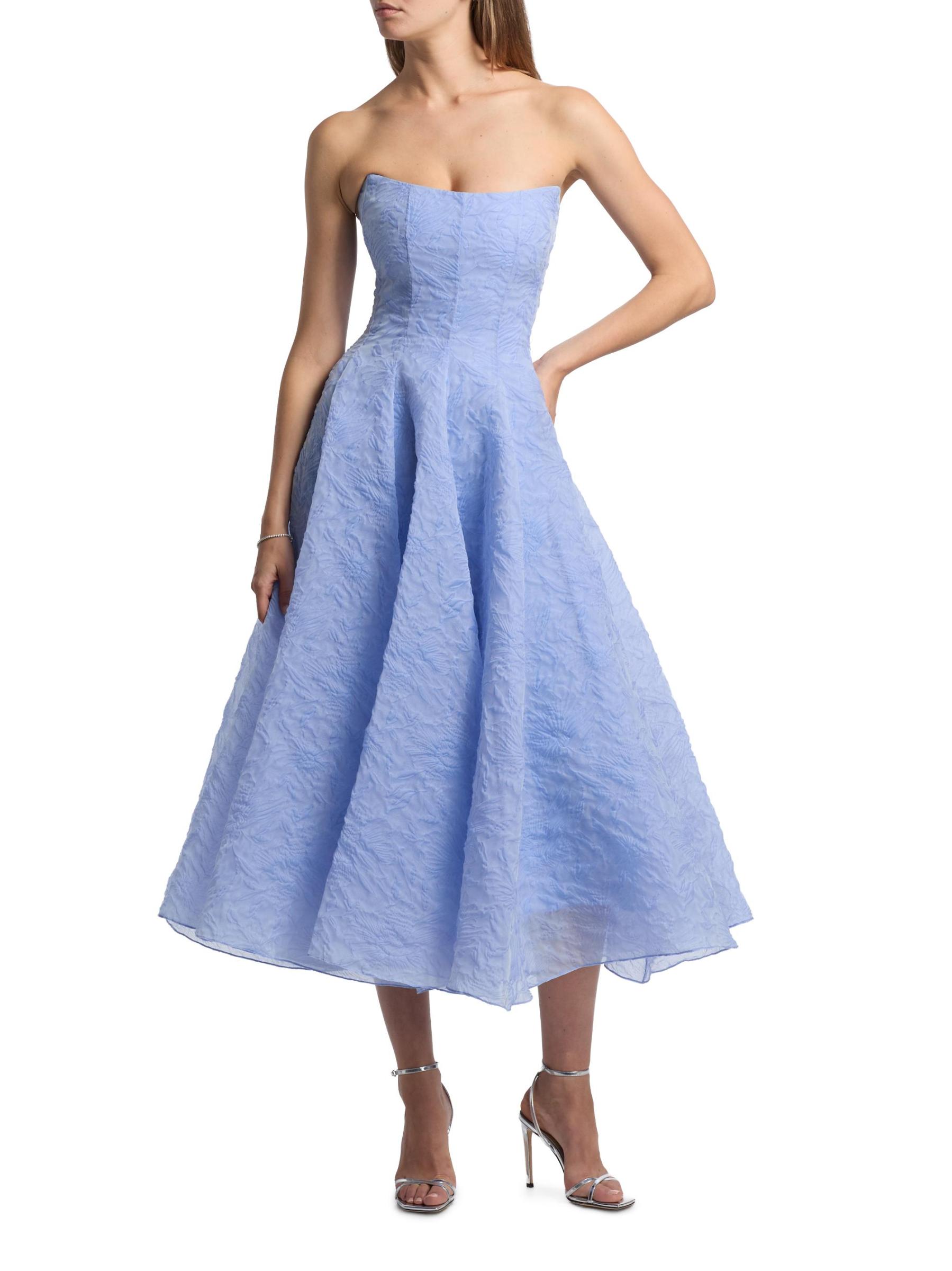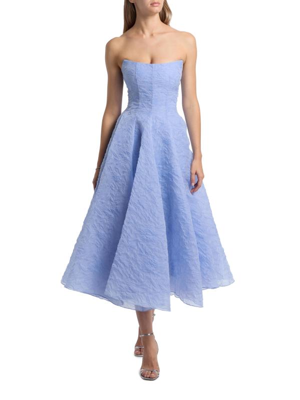 فستان متوسط الطول بدون حمالات على شكل وردة من روسو