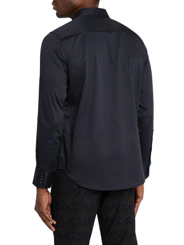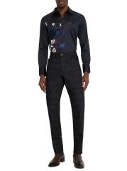 تضفي بطاقات البوكر والرقائق ووعاء المشروبات الكحولية الفاخر جوًا من الأناقة الملكية على هذا القميص الفاخر المصنوع من القطن القابل للتمدد من روبرت جراهام.ياقة مدببة أكمام طويلة وأساور أسطوانية مترية حافة على شكل ذيل القميص إغلاق بأزرار أمامية قطن/إيلاستين يُغسل في الغسالة مستوردة
