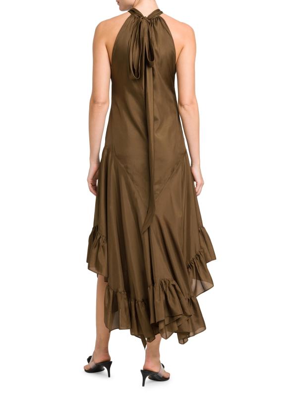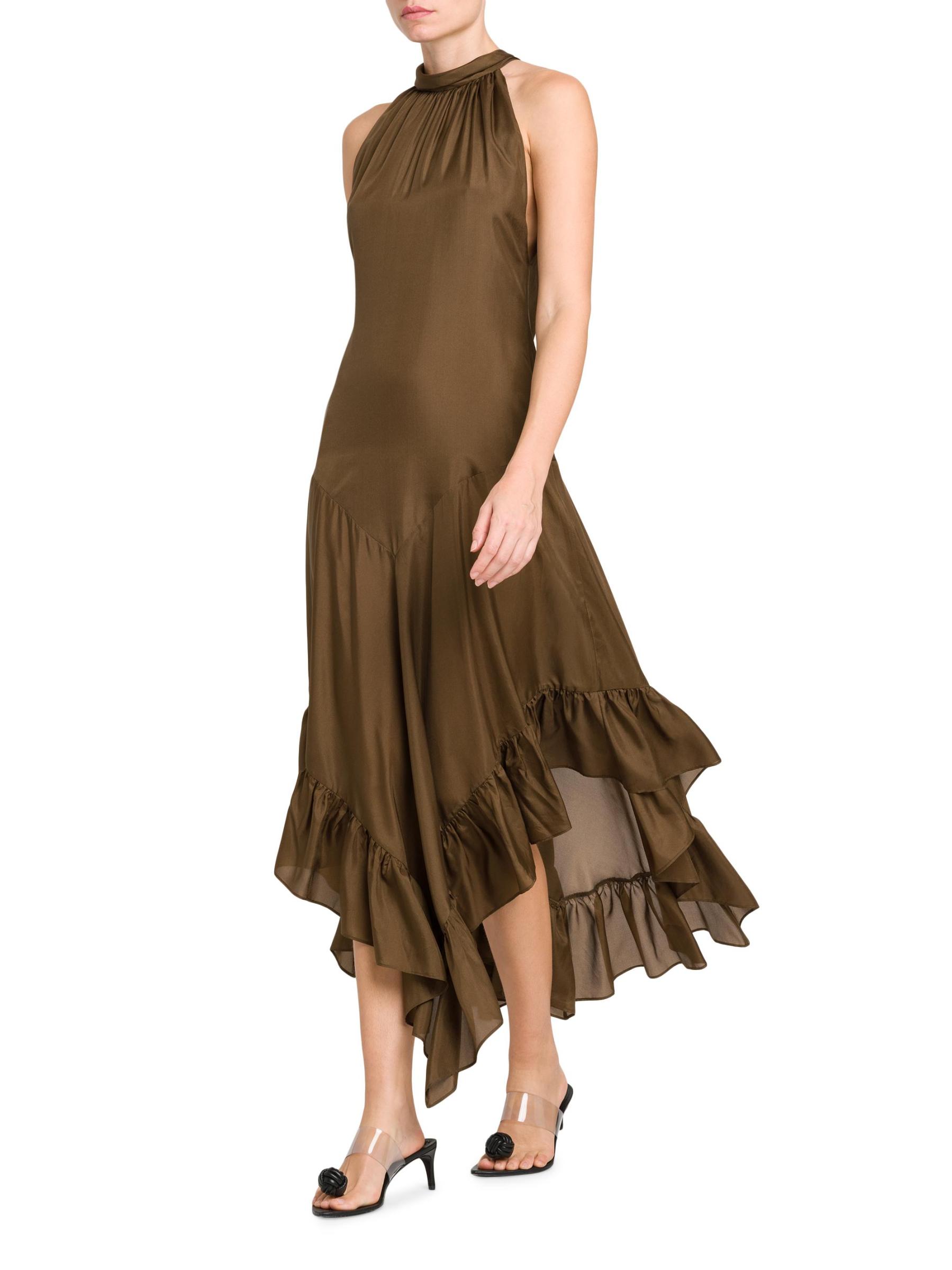 صُمم هذا الفستان الطويل من Philosophy di Lorenzo Serafini من حرير هابوتاي الفاخر برقبة رسن متناسقة وزخارف منسدلة مكشكشة.