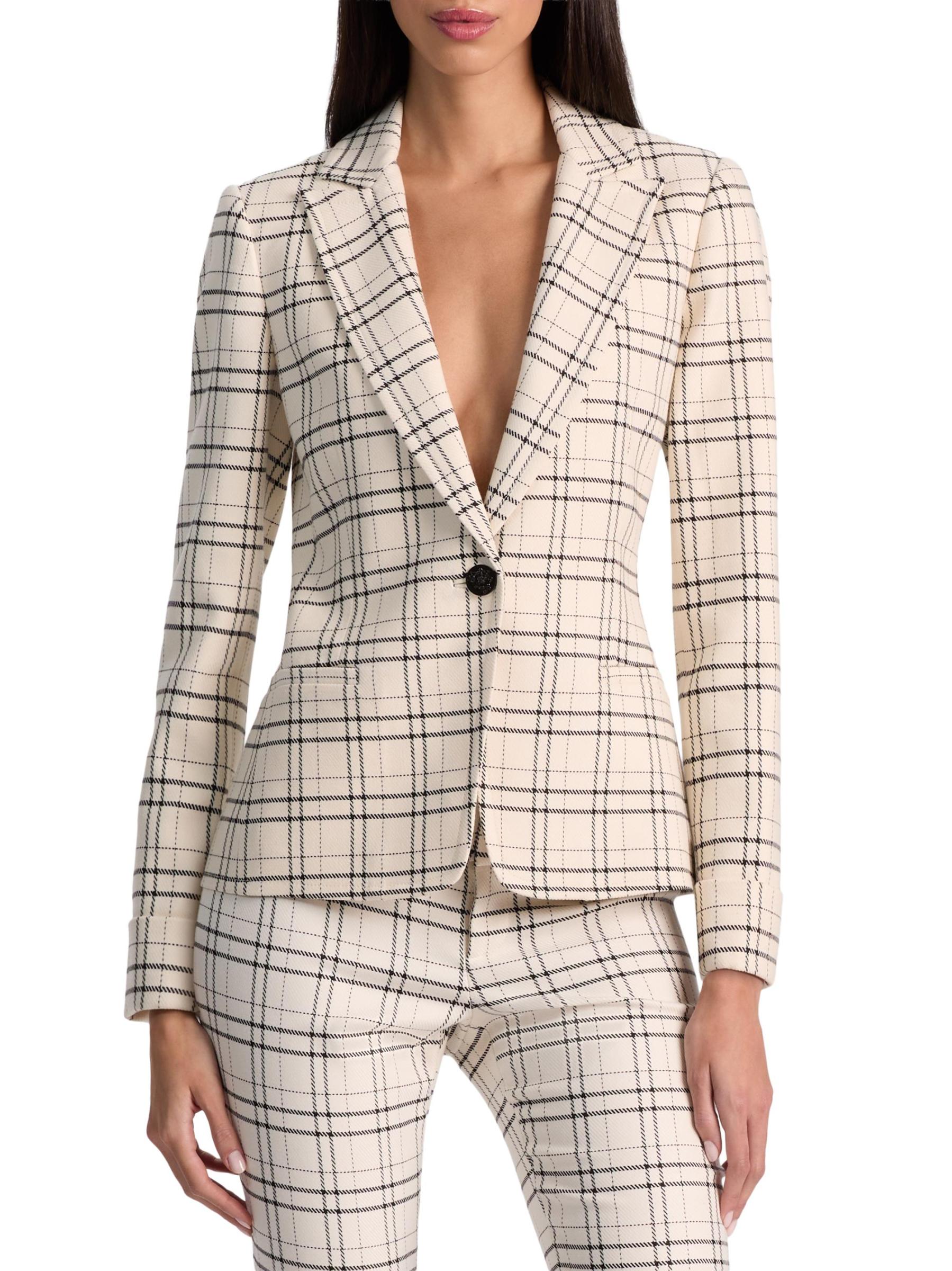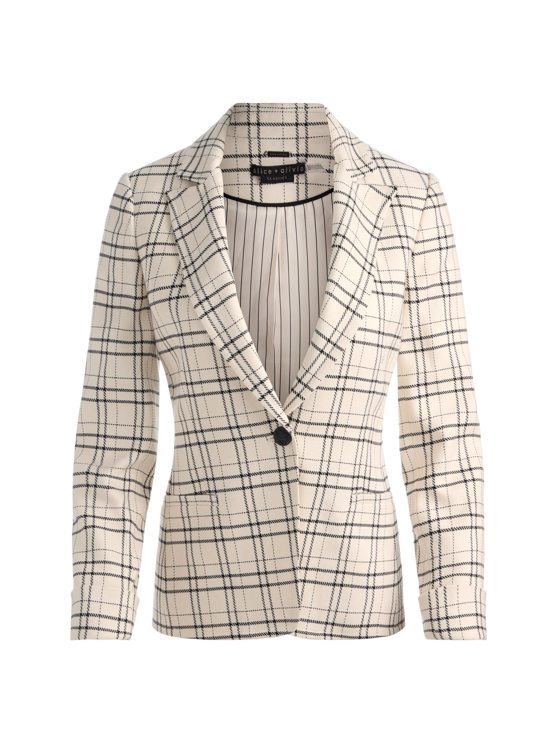 تتميز سترة Ryder هذه من Alice + Olivia بنمط منقوش وطية صدر عالية وجيوب مرقعة.