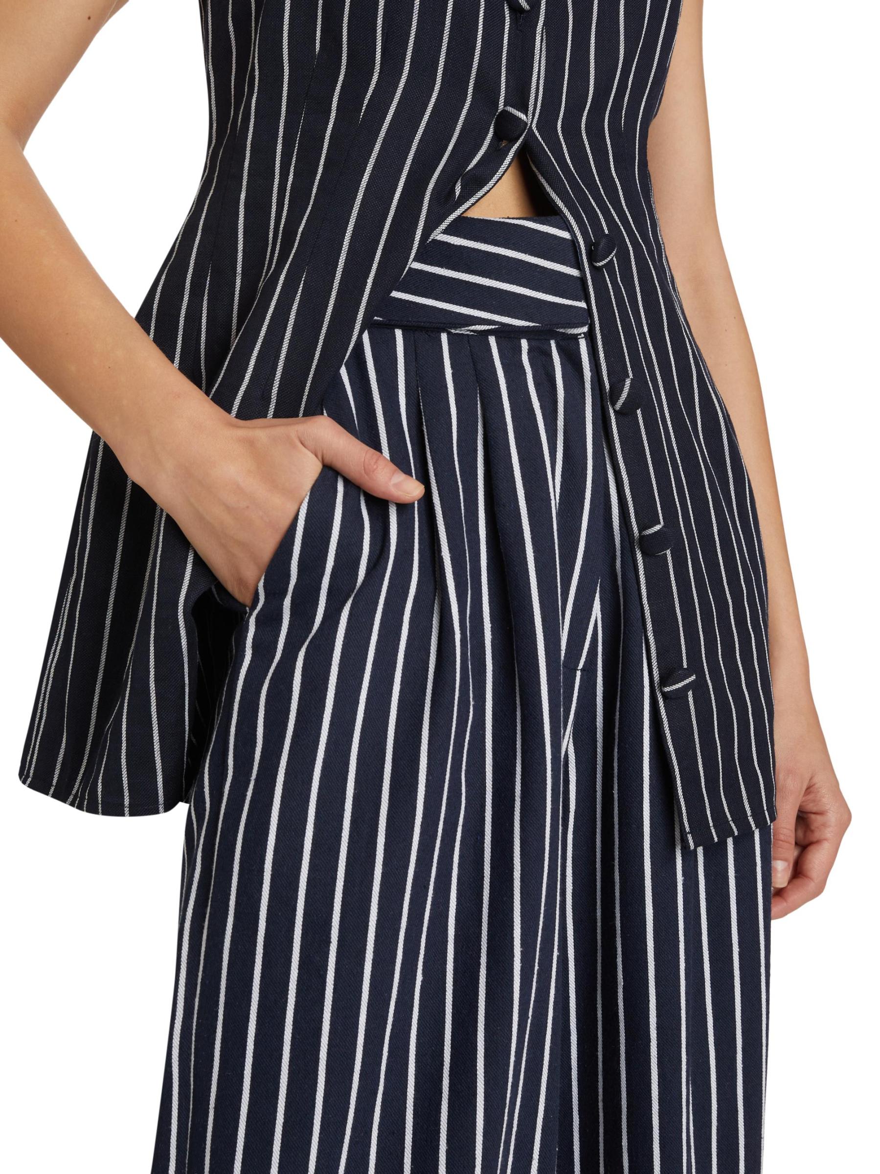من مجموعة لا كوليكيونيستا. يُضفي بنطال Atelier Crump، المصنوع من مزيج القطن المقلّم، لمسة راقية على الشكل الفضفاض. يتميز هذا البنطال الأنيق بمظهر متطور ومريح.