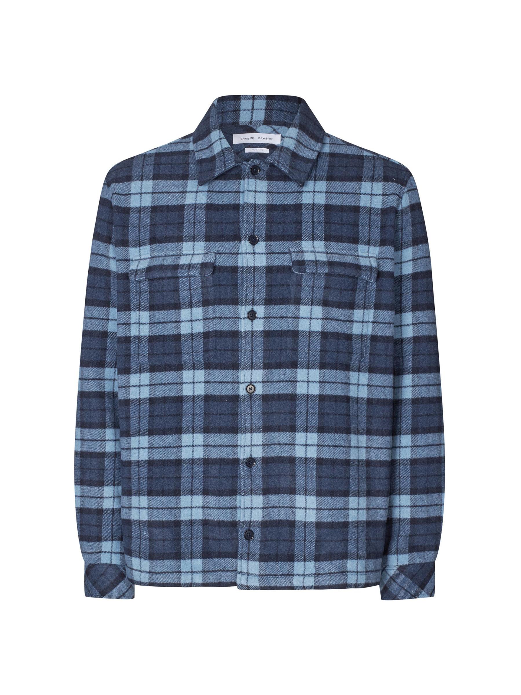 تم تصميم قميص Sacastor X بأزرار أمامية من Samsoe Samsoe بنمط منقوش وجيوب خارجية على الصدر.