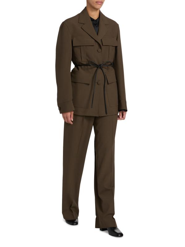 يُعد جاكيت Safari المصمم على طراز بليزر من Róhe لمسة أنيقة من الخياطة النفعية، وهو مصنوع من الصوف البكر. تم تصميم هذا الطراز المريح بأربعة جيوب أمامية قابلة للطي للهيكل والوظيفة.التلابيب النوتش أساور بأزرار بأكمام طويلة جيوب خارجية على الصدر والجانب حزام ربط ذاتي إغلاق بأزرار أمامية صوف بكر 100% تنظيف جاف صُنع في البرتغال