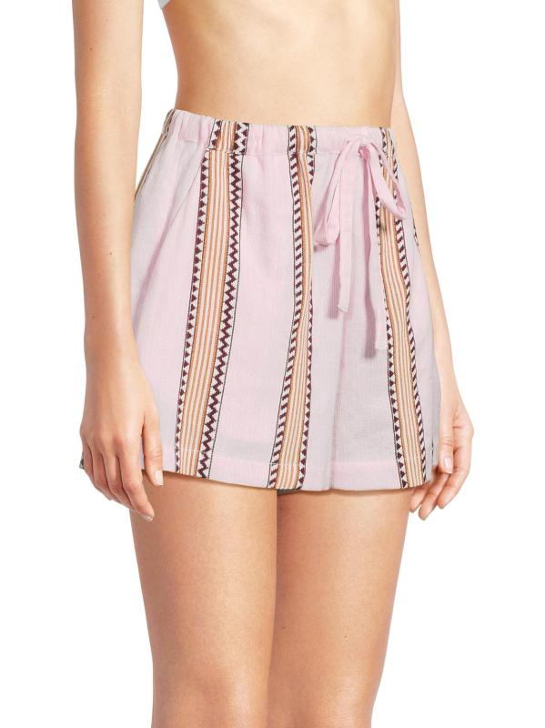 تم تصميم شورت Safia من lemlem المصنوع يدويًا من الجاكار المنسوج يدويًا مع صورة ظلية واسعة الساق وحزام خصر قابل للتمدد. يتضمن هذا الطراز جيوبًا أمامية مائلة وتم تصميمه مع الالتزام بالحفاظ على تقاليد النسيج المحلية في إثيوبيا.