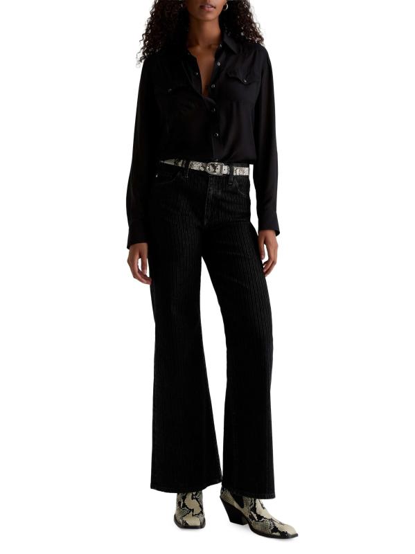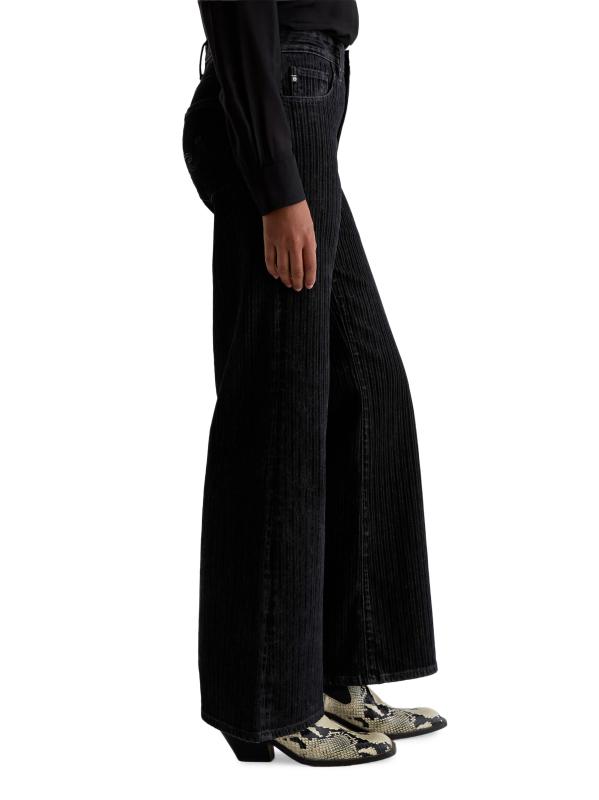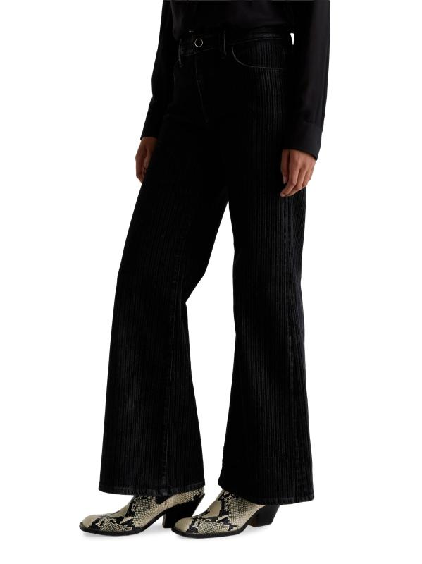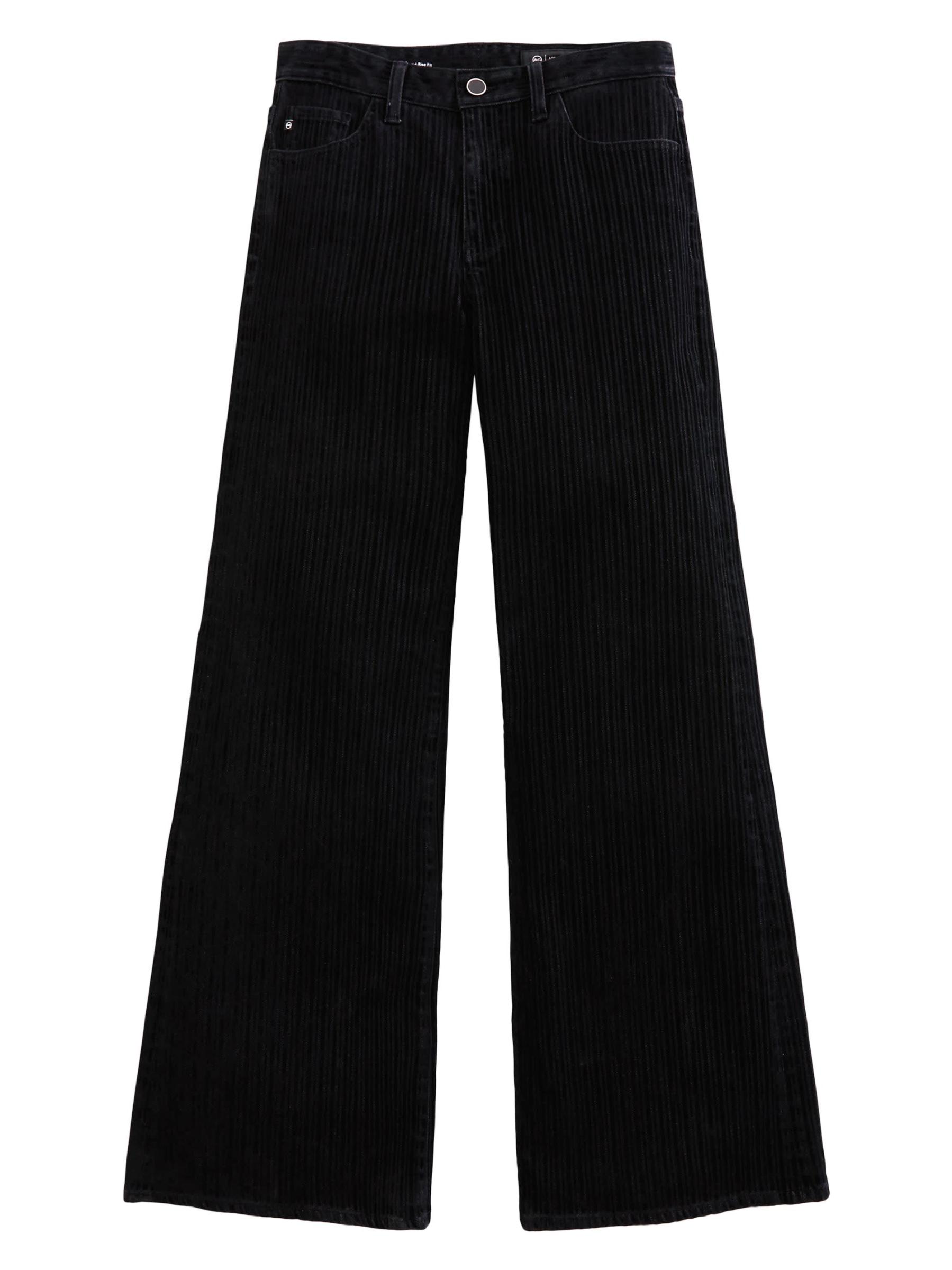 صُمم جينز Saige من AG Jeans من القطن المرن بتصميم مرتفع واسع الساق مع مخطط مخملي متموج.