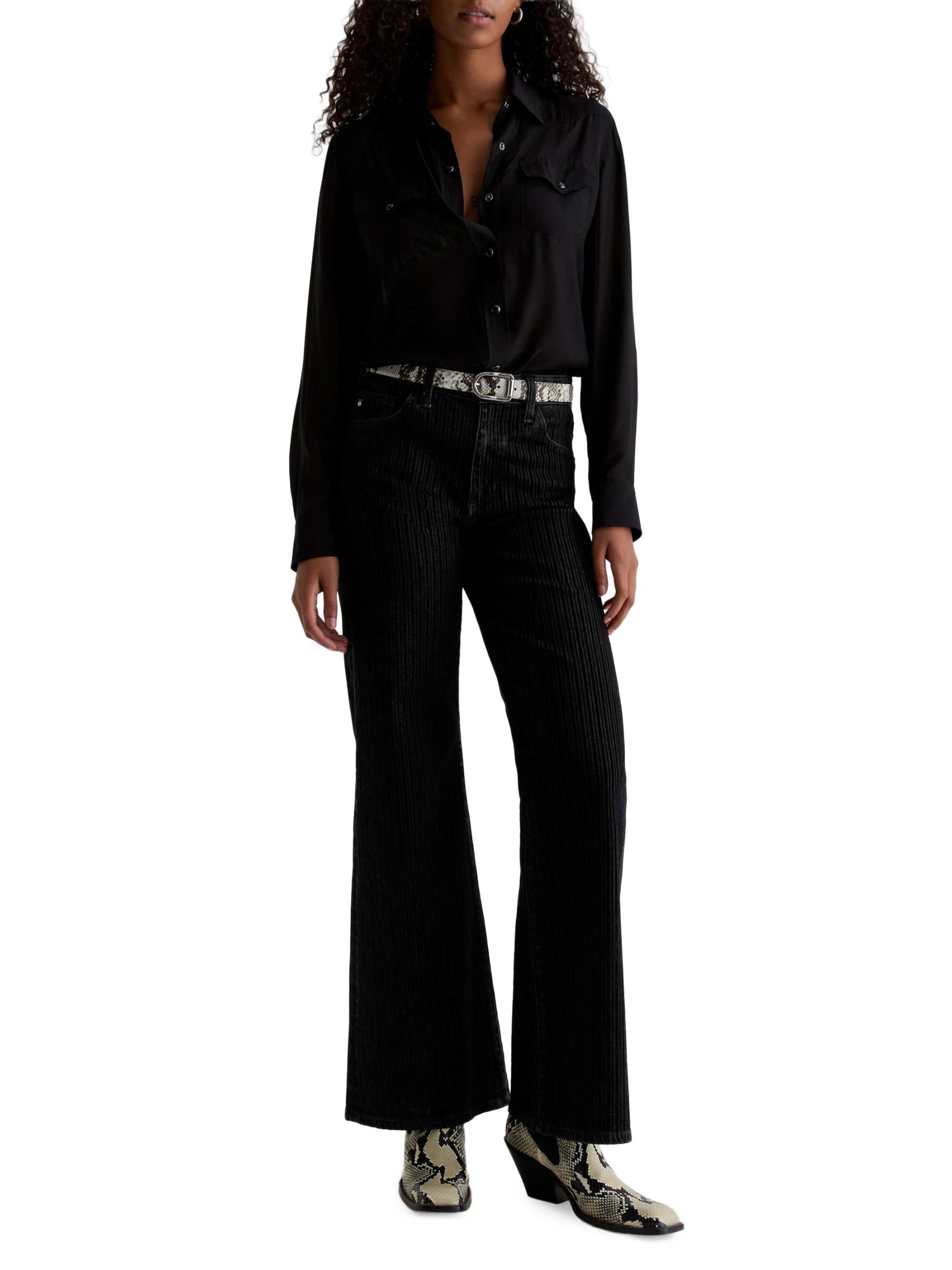 صُمم جينز Saige من AG Jeans من القطن المرن بتصميم مرتفع واسع الساق مع مخطط مخملي متموج.طراز بخمسة جيوب سحّاب، زر للإغلاق 98% قطن/ 2% إليستين يُغسل في الغسالة مستوردة