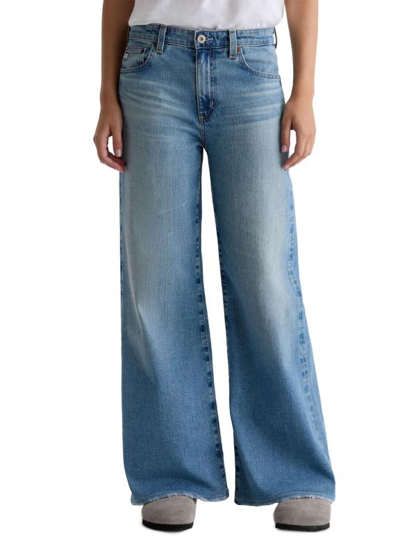 بنطال جينز Saige من AG Jeans مصنوع من الدنيم مع لمسة من التمدد لتوفير الراحة. يتميز هذا الطراز بتصميم واسع الساق وخصر مرتفع يكتمل بشعيرات خفيفة.طراز بخمسة جيوب سحّاب، زر للإغلاق 98% قطن/ 2% سباندكس يُغسل في الغسالة مستوردة