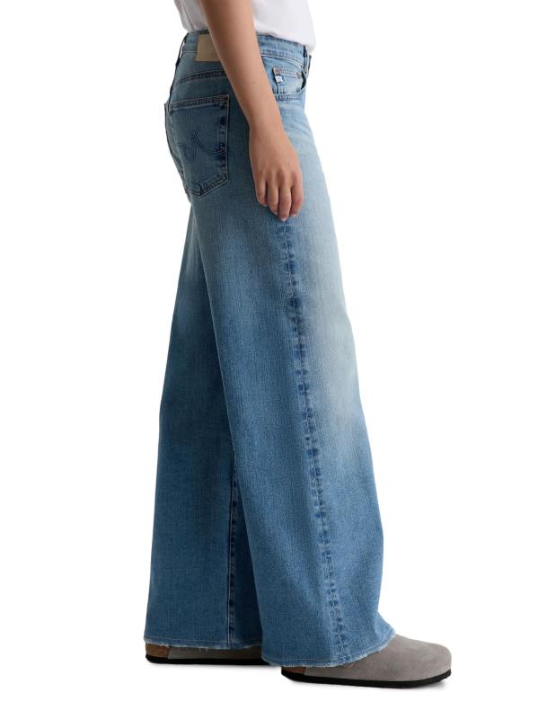 بنطال جينز Saige من AG Jeans مصنوع من الدنيم مع لمسة من التمدد لتوفير الراحة. يتميز هذا الطراز بتصميم واسع الساق وخصر مرتفع يكتمل بشعيرات خفيفة.