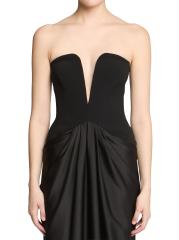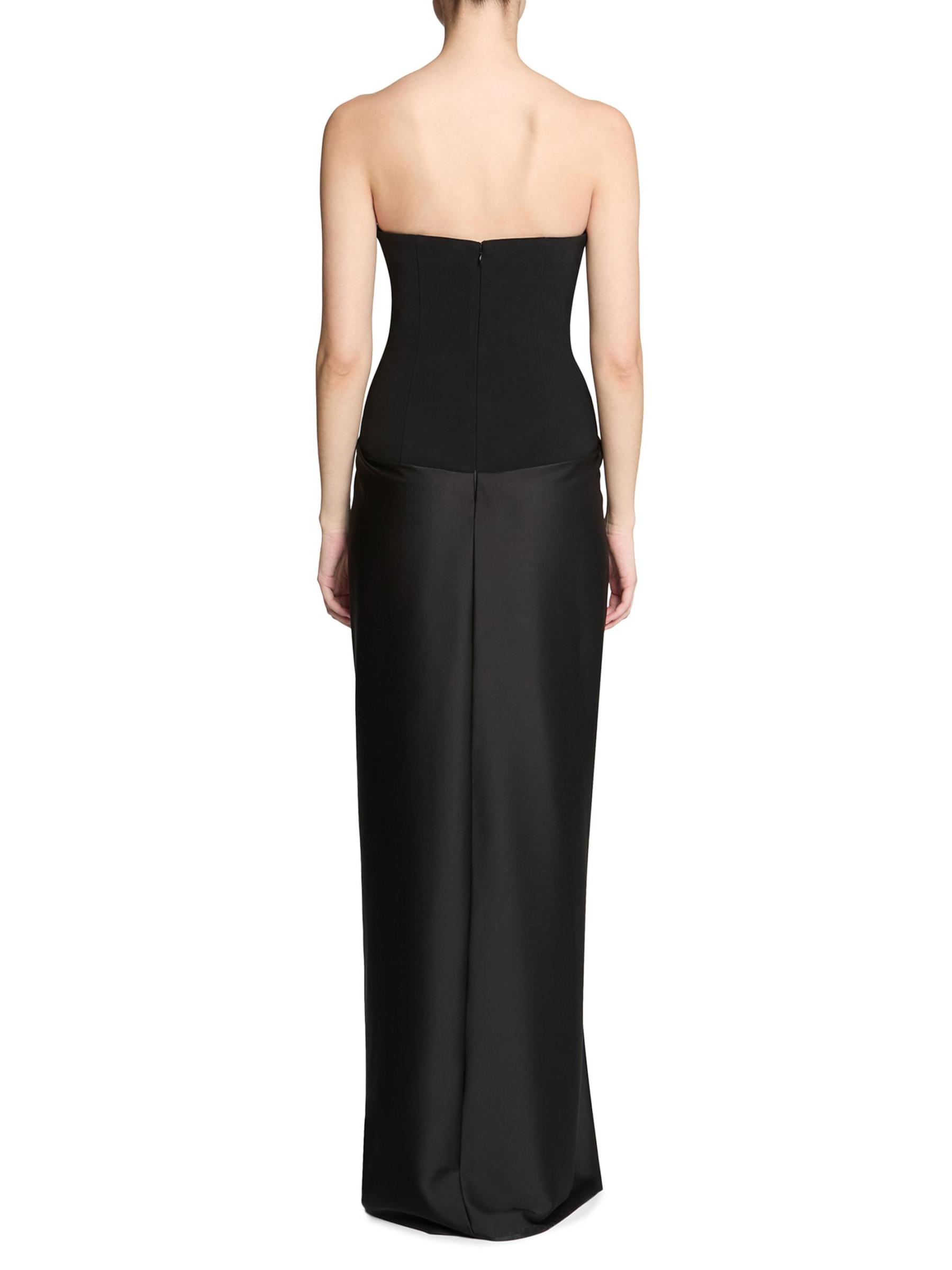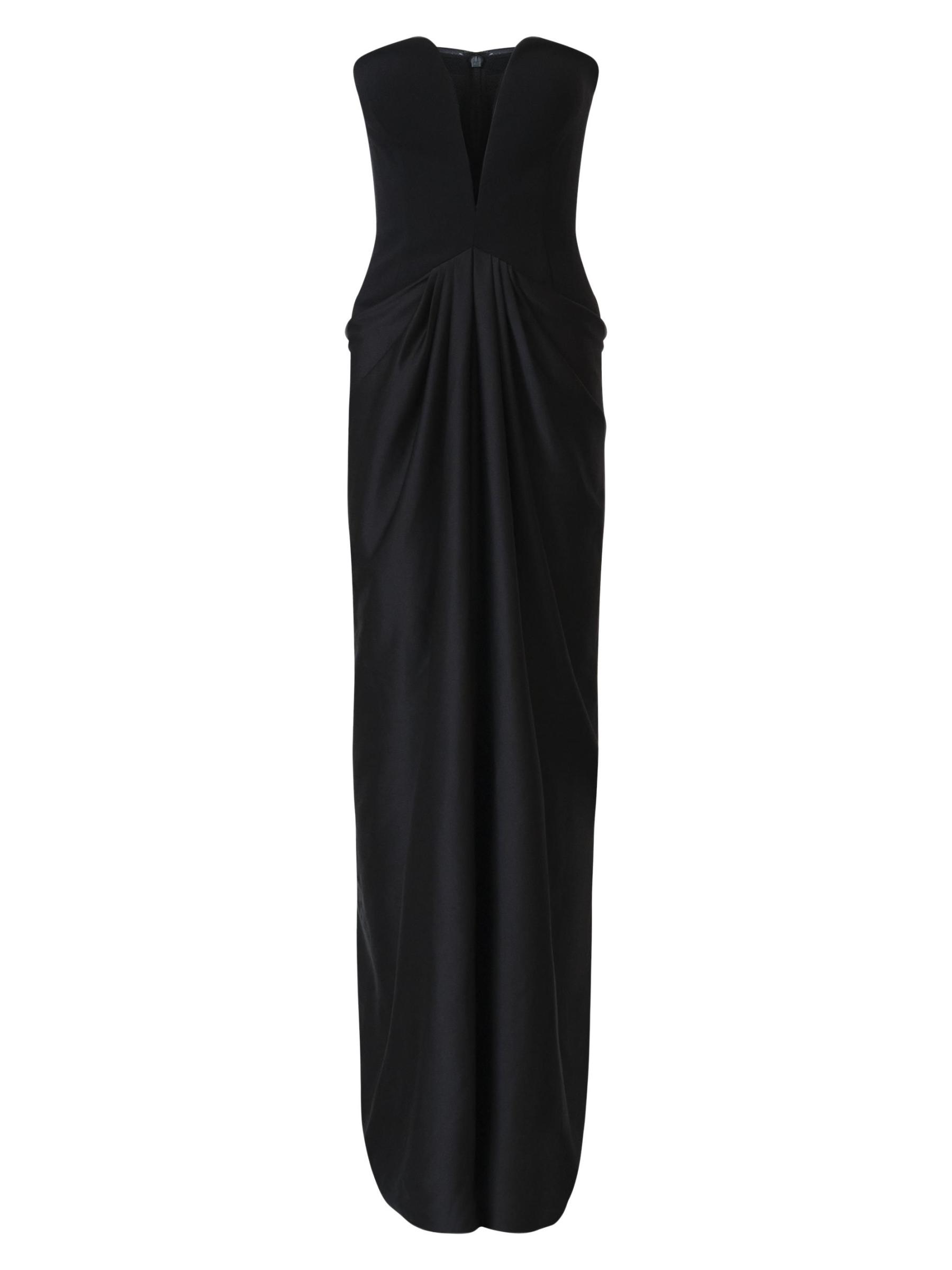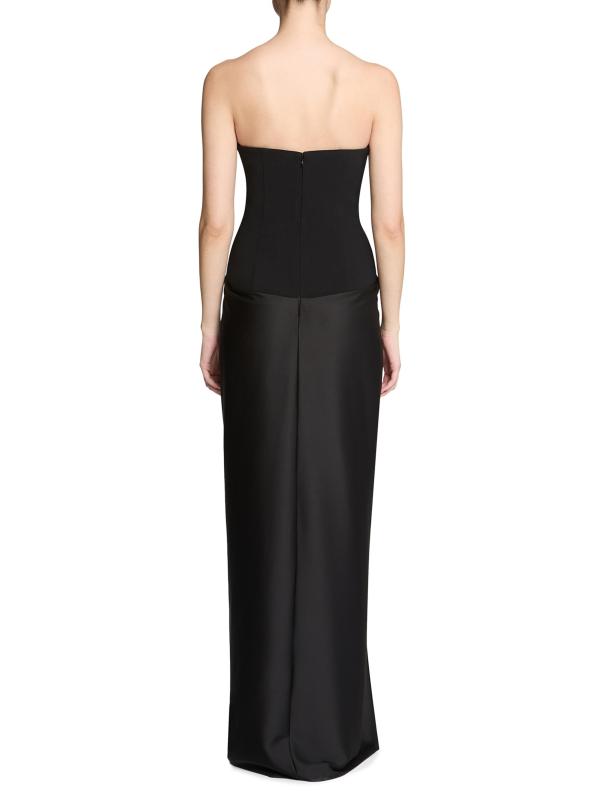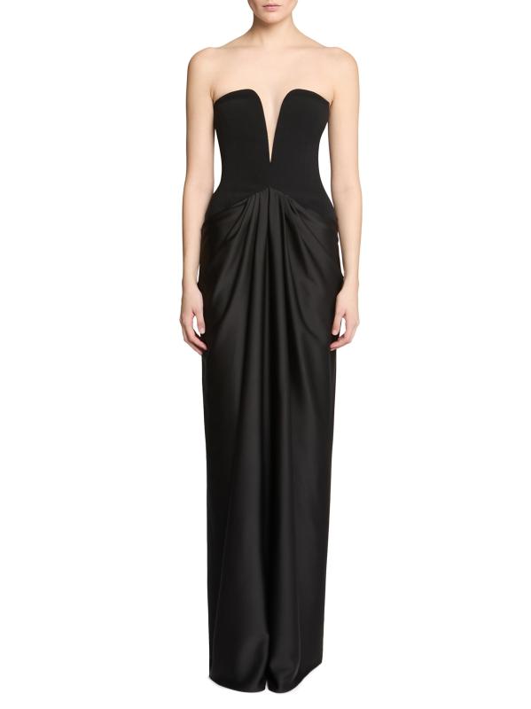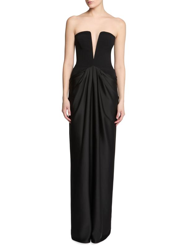 يتميّز فستان Sanna هذا من Halston، المصنوع من الكريب القابل للتمدد والساتان، بتقويرة رومنسية واسعة بدون حمالات.